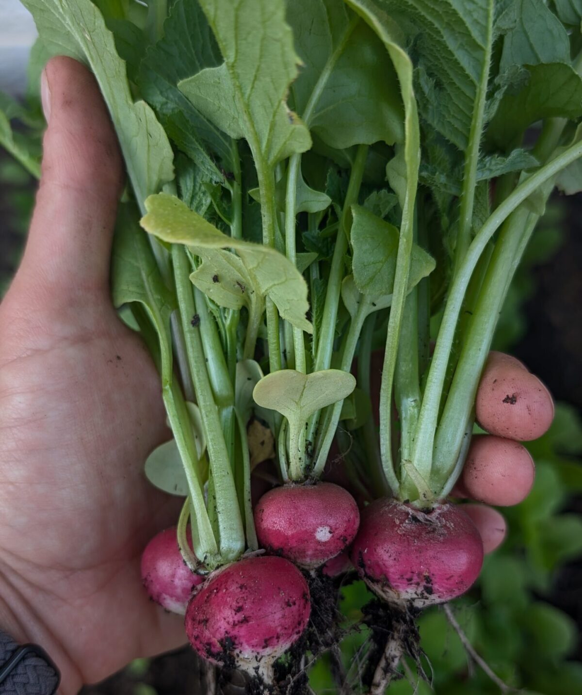 Radieschen sind wahrscheinlich das dankbarste und schnellste Gemüse überhaupt. Du säst sie aus und kannst oft schon nach ca. vier Wochen ernten. Schneller geht’s kaum. Außerdem verzeihen sie kleine Fehler und wachsen auch in Kästen oder Töpfen problemlos. Kleiner Tipp: Je weniger du gießt, desto schärfer werden sie.