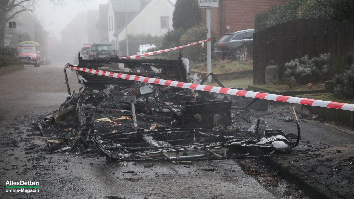 Mitte Januar brennt ein Wohnwagen in der Heidberge, – übrig bleibt ein Haufen Schutt und Asche (H I E R).
