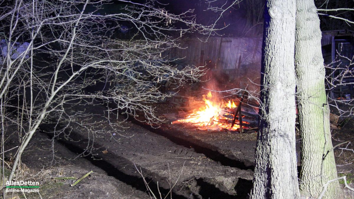 Unerlaubtes Abbrennen von Baum- und Strauchschnitt, aber auch Paletten und weitere Holzabfälle, dessen Funkenflug einen unmittelbar angrenzenden Baumbestand gefährdeten, sorgten am 17. März 2025 in den Abendstunden für einen Einsatz der Emsdettener Feuerwehr an der Westumer Landstraße. Passanten hatten von Lange Water aus die hohen Flammen gesehen und die Wehr alarmiert (H I E R).