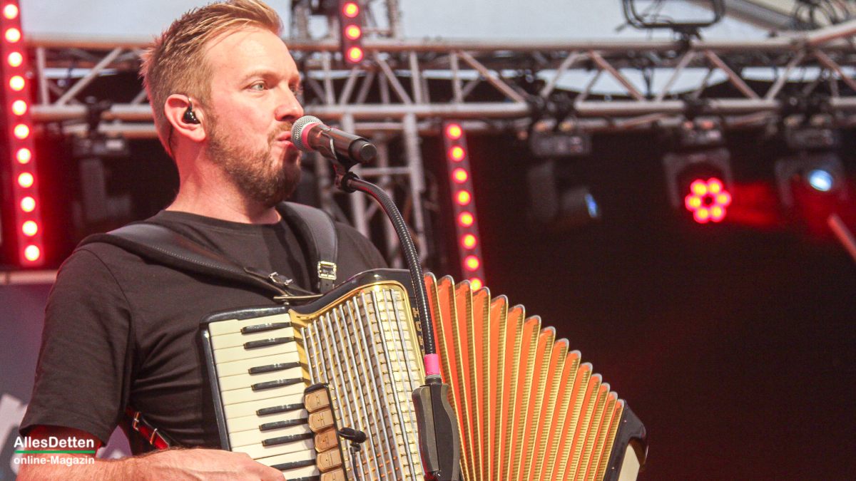 Einmal rund um die Uhr, von 11 bis 11 feierte Dottland das neue Motto, den Frohsinn, die gute Laune und sich selbst. KGE-Präsident Martin Mersmann und Bürgermeister Oliver Kellner zeigten sich überwältigt angesichts des Bildes, das sich ihnen von der Bühne ins 1.000 qm große Zelt bot.