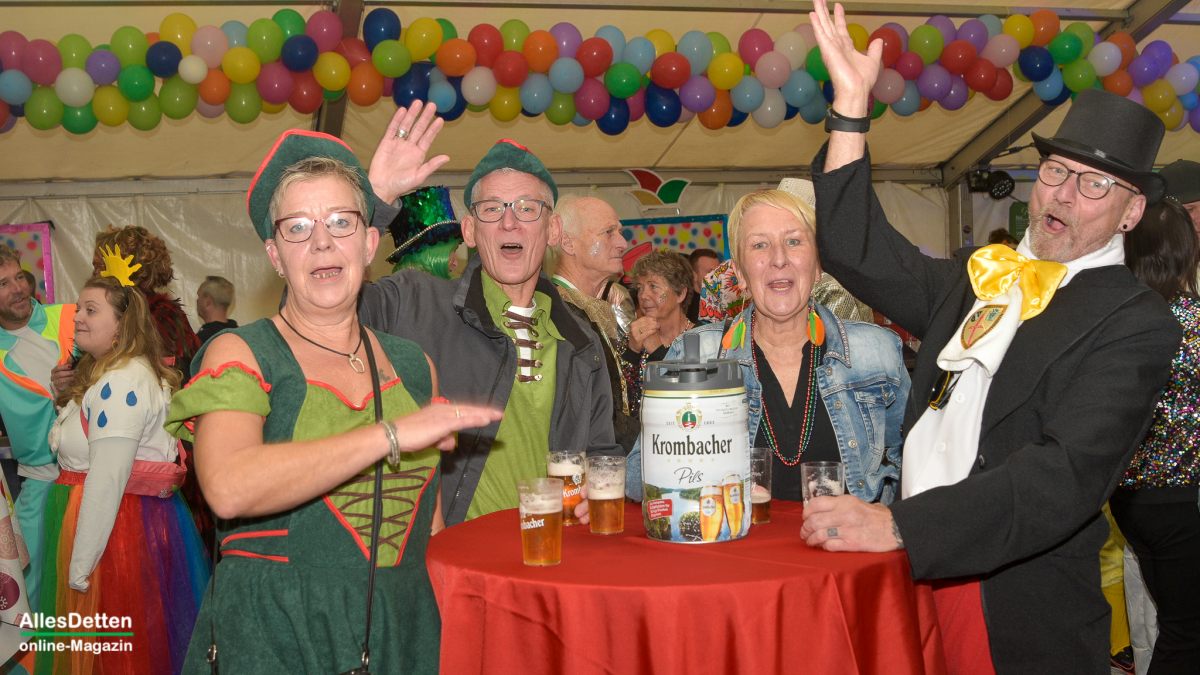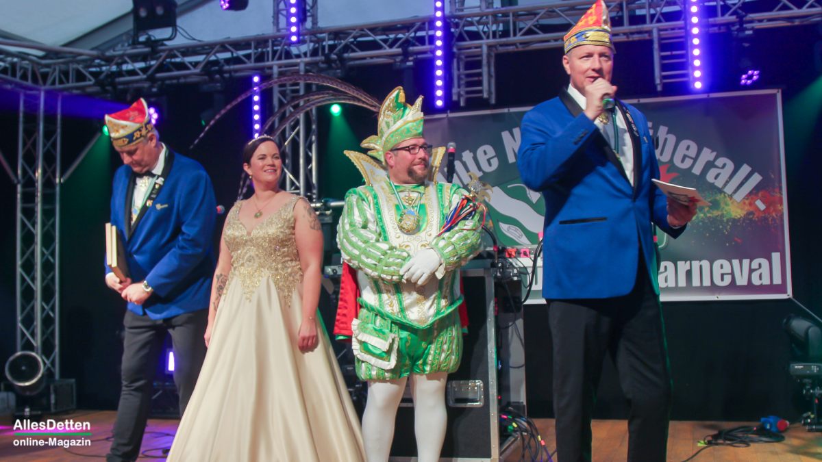 Der neue Stadtprinz und der neue Elferrat mögen tatsächlich im Zelt gewesen sein, haben sich aber noch nicht zu erkennen gegeben. Aus gewöhnlich glaubwürdig unterrichteter Quelle, dem eigenen Augenpaar, wissen wir aber, dass die künftige Tolität von Dottland im Zelt war und mit den vielen anderen Emsdettener Närrinnen und Narren bereits Karnevalsluft geschnuppert hat.