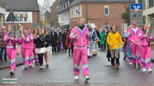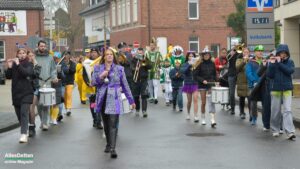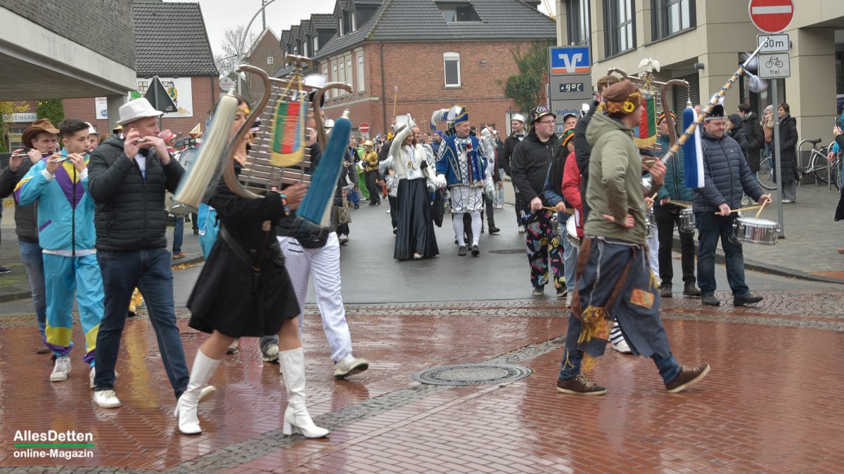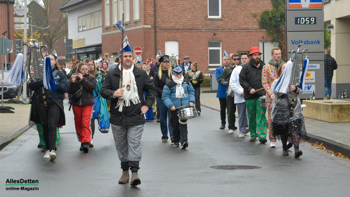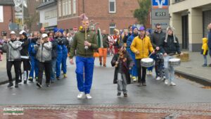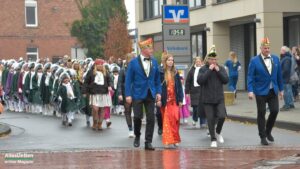 Vorher gab es einen Umzug von Graute Beik, einmal um die Pankratiuskirche und dann zum Zelt. Einige Gesellschaften hatten ihre Spielmannszüge mitgebracht, somit gab es schon im November einen kleinen Vorgeschmack auf den Rosenmontagszug.