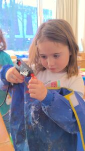Es wurde gemalt, geschnitten, gebastelt, geklebt,…… kreatives Austoben pur. So entstanden Schritt für Schritt die schönsten Welten zur Geschichte der kleinen Hexe in den Schuhkartons.