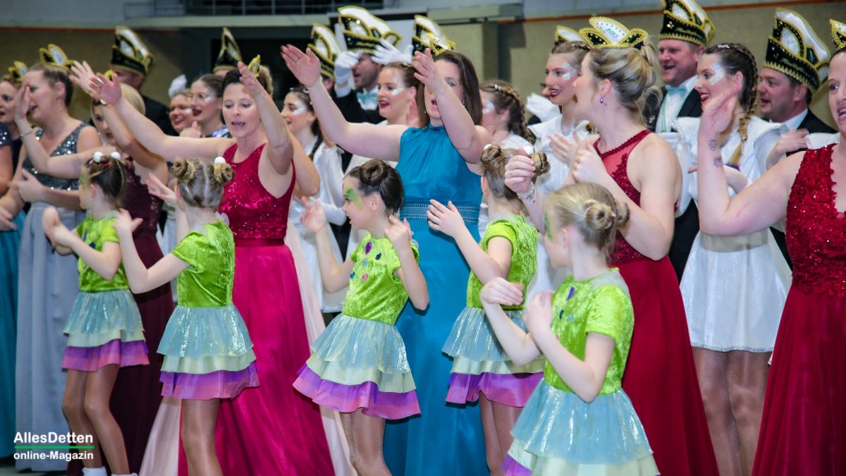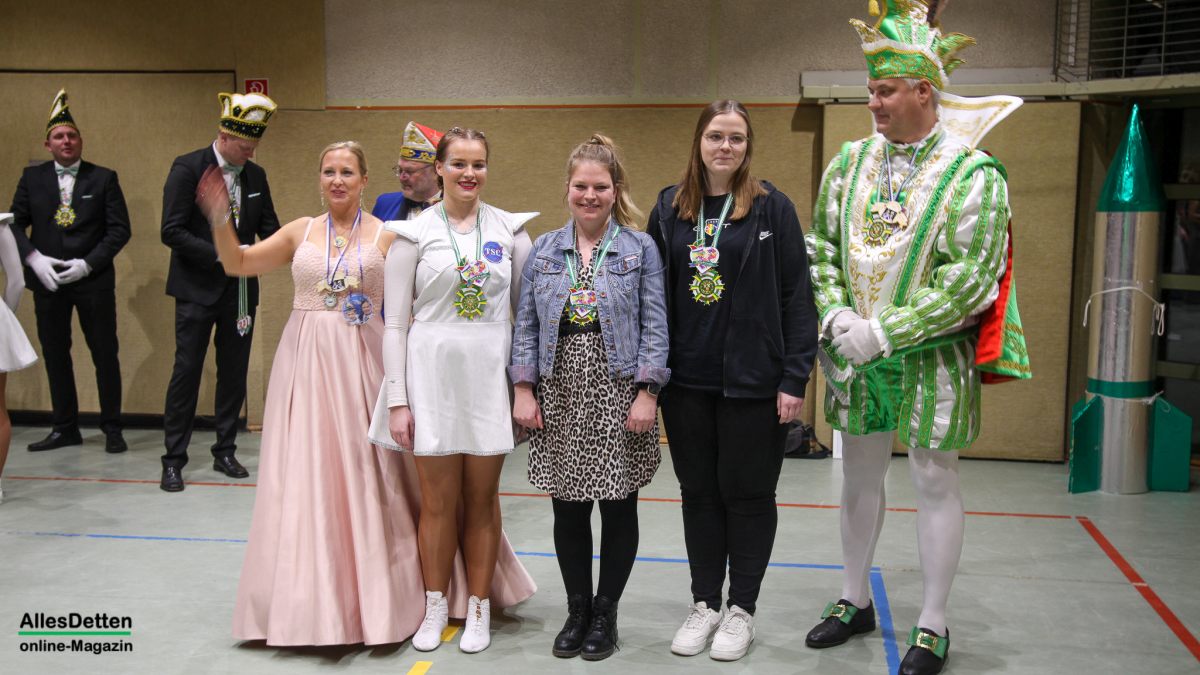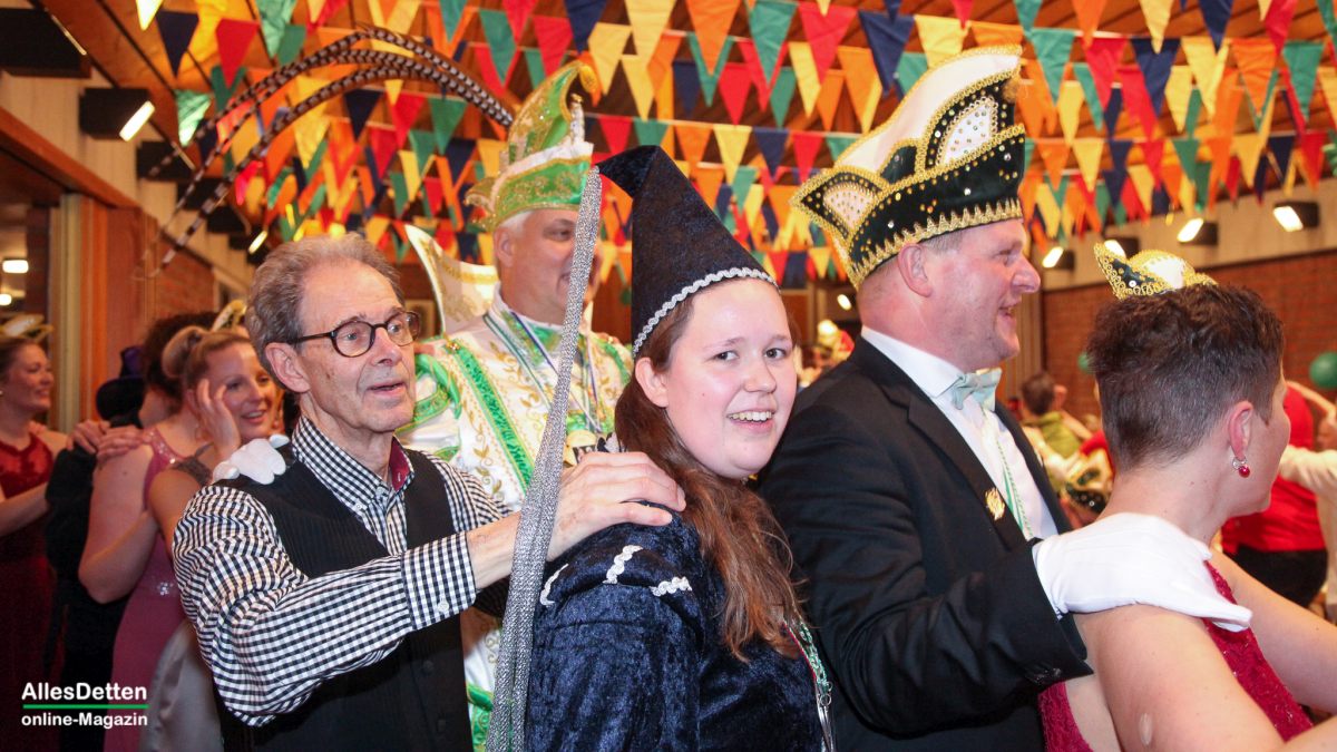 Rund ging es auch beim traditionellen Familiennachmittag des TSC KG Emsdetten in der Mehrzweckhalle Sinningen. Hier wurden interne Ehrungen vorgenommen, natürlich auch gezeigt, wofür man während des ganzen Jahres trainiert. Als das Stadtprinzenpaar mitsamt Gefolge dann Einzug hielt, gab es noch eine besondere Ehrung: KGE-Präsident Helmuth Schäckel und Vize-Präsident Stefan Albers sind gewissermaßen auf Abschiedstour. Für die beiden ist es die letzte Session. Für die stets gute Zusammenarbeit mit der KGE bedankte sich die Vorsitzende des TSC, Gaby Frede, mit zwei Urkunden und donnerndem Applaus der Tänzerinnen im Hintergrund.