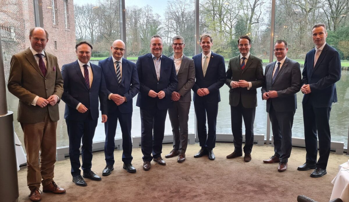 Zu ihrer ersten Konferenz des Jahres haben sich jetzt die Landräte der Kreise im Regierungsbezirk Münster sowie der Oberbürgermeister der Stadt Münster in der Wasserburg in Isselburg-Anholt getroffen. Dort hieß Borkens Landrat Dr. Kai Zwicker unter anderem auch Dr. Martin Sommer, Landrat des Kreises Steinfurt, willkommen.