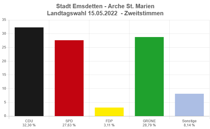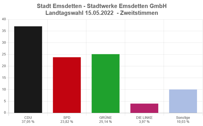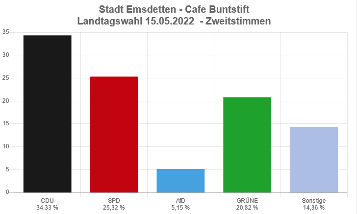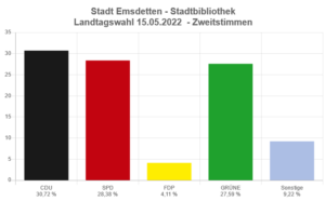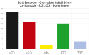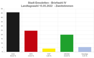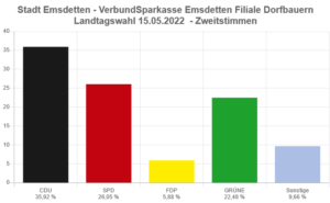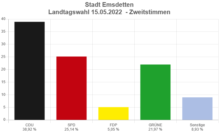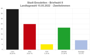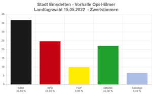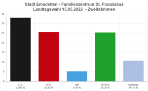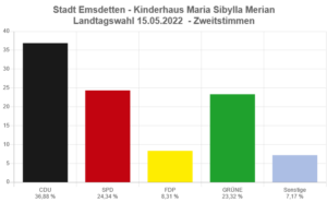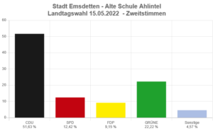 In den einzelnen Stimmbezirken gibt es folgende Ergebnisse (Zweitstimmen)