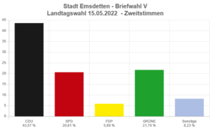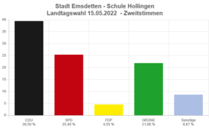 Beate Harmsen, Ratsmitglied der FDP in Emsdetten, war selber als Landtagskandidatin angetreten. Die Chance, dass sie dem nächsten Landtag angehören würde, war sehr gering. Ihr Listenplatz hätte schon ein Wahlergebnis für die Liberalen von um die 20 % gebraucht. Dass diese nicht erreicht wurden, war klar, persönlich zeigte Harmsen sich enttäuscht von dem Ergebnis, war von mindestens 6 % für die FDP ausgegangen.