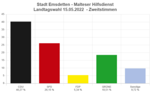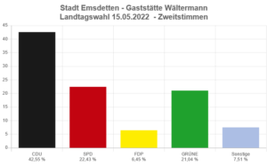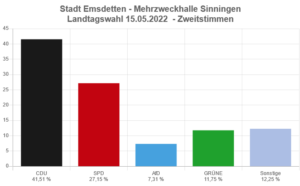 „Großer Wahlgewinner in Emsdetten wie auch im Land NRW ist die CDU. Sie hat die meisten Wählerstimmen bekommen und mit großem Abstand zur SPD und den Grünen einen klaren Regierungsauftrag erhalten.“, so die erste Stellungnahme von Hanno Moers, Vorsitzender der Ortsunion und Daniel Hellwig, Fraktionsvorsitzender der CDU im Rat der Stadt Emsdetten.