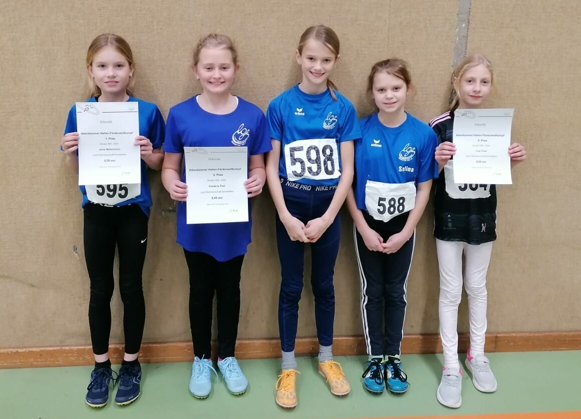 In der Altersklasse der W9 waren mit Josie Waltermann, Frieda te Poel, Lisa Tews und Lina Hammer gleich vier LGE-Mädchen am Start. Insbesondere Josie Waltermann ließ in ihren Disziplinen gar nichts anbrennen. Sie siegte sowohl im Schlagball mit 24,50 m, im Weitsprung mit 3,86 m, sowie im Sprint mit 8,28 s. Darüber hinaus startete sie eine Altersklasse höher im Hochsprung und gewann auch diesen Wettkampf mit einer übersprungenen Höhe von 1,18 m. Aber auch die anderen drei Mädels konnten mit ihren Leistungen zufrieden sein. Frieda te Poel sicherte sich im Weitsprung mit 3,51 m und im Sprint mit 8,45 s einen hervorragenden 2. Platz. Die geworfenen 20 m im Schlagball reichten ihr zudem zum 3. Platz. Weiterhin sprang Lina Hammer 2,37 m und warf den Schlagball 14,50 m. Lisa Tews, auch zum ersten Mal dabei, sprang 2,85 m, warf den Schlagball 11,50 m und sprintete die 50 m in 9,58 s.