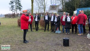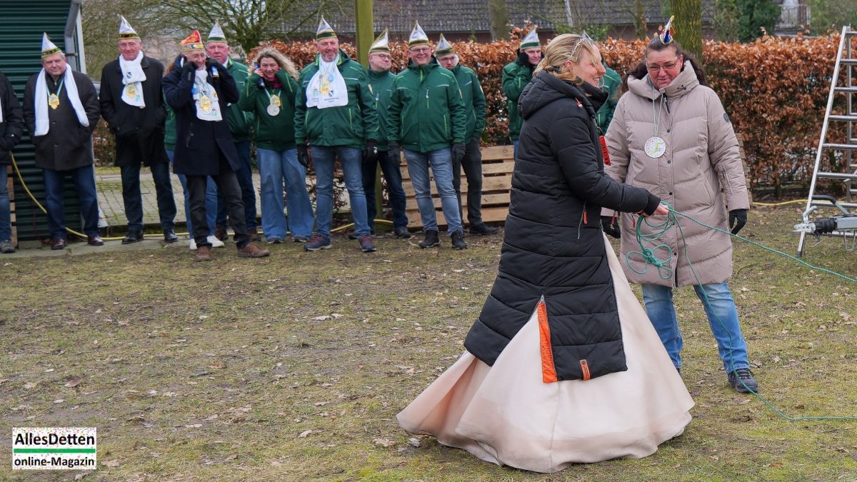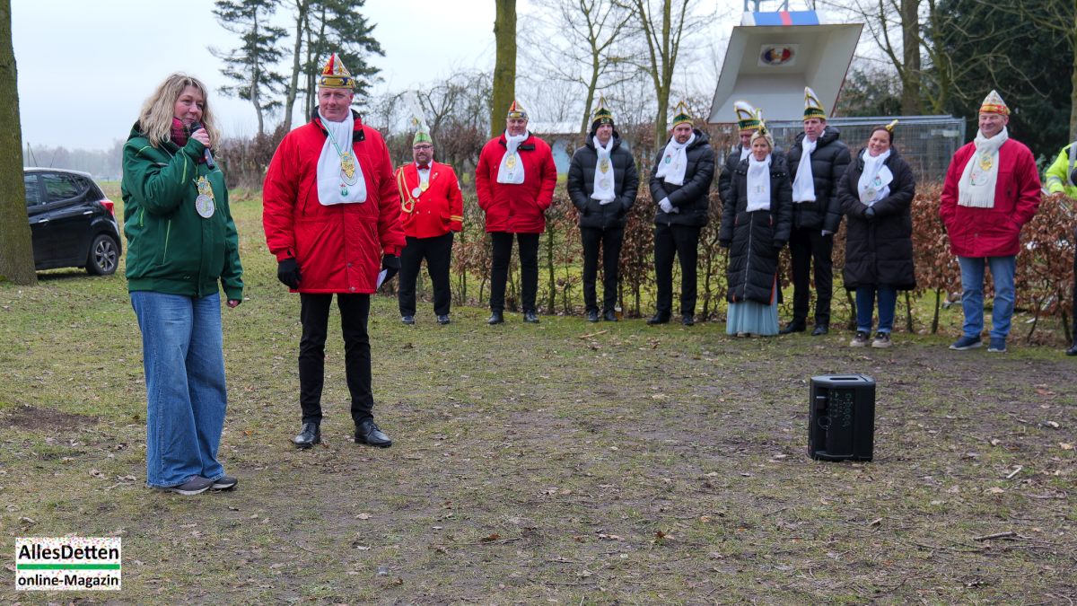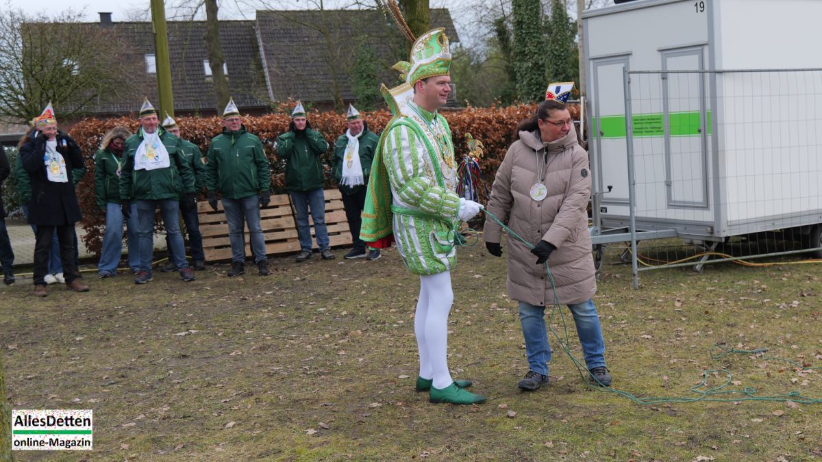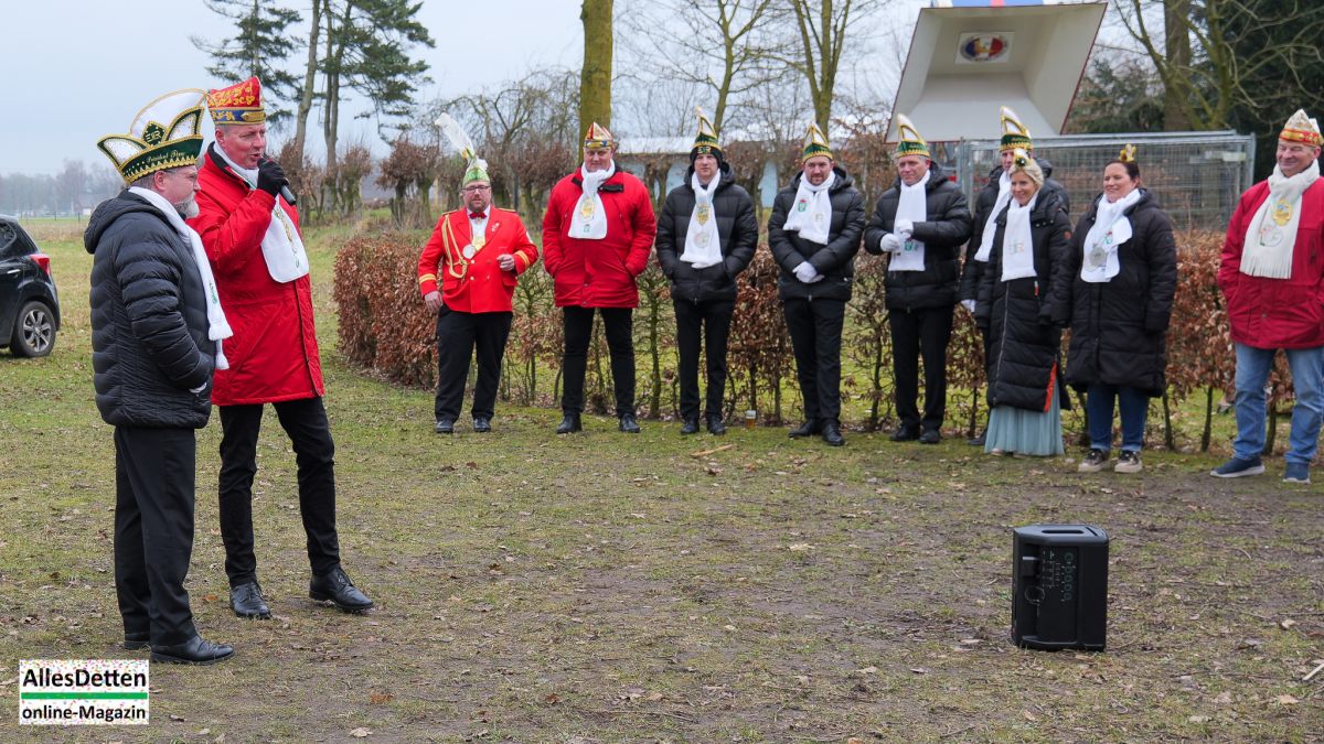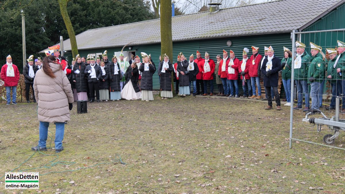„Das ist hier eigentlich immer der Auftakt in die drei tollen Tage!“ begrüßte KGE-Präsident Martin Mersmann Stadtprinzenparr und -elferrat 2026, KGE-Vorstand, KGE-Wagenbauer, einige Senatoren,einige ehemalige Stadtprinzen sowie einige Mitglieder der Westumer Einigkeit, als am Samstagmittag traditionell der Startschuss gegeben wird.