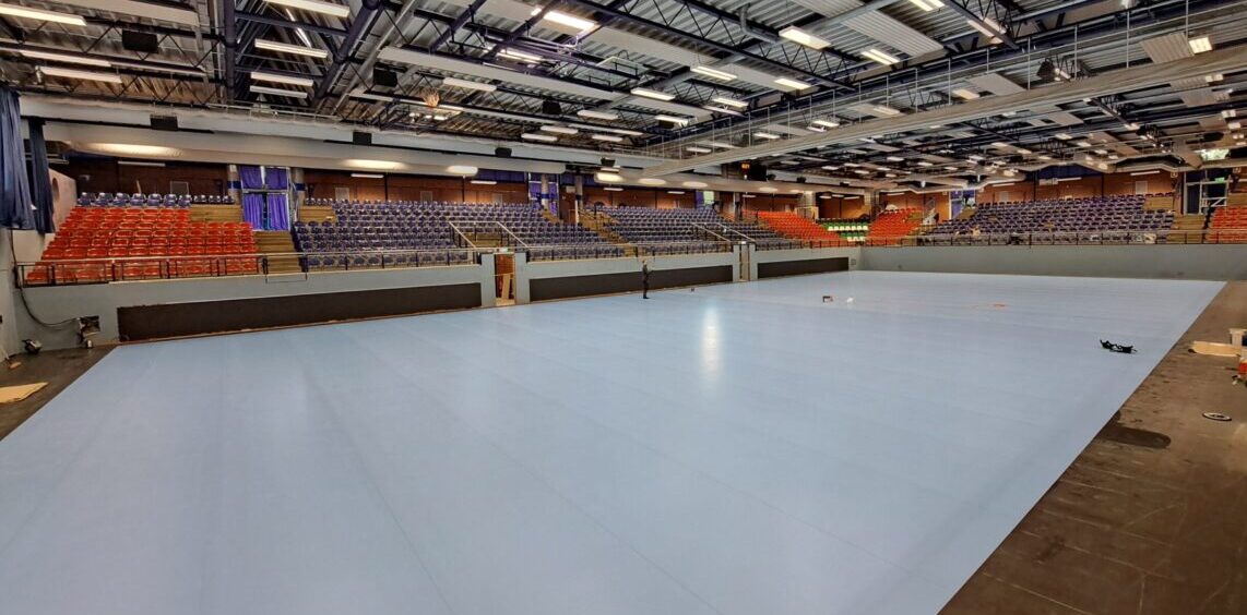 Der neue, zweitliga-taugliche Sportboden wird derzeit finalisiert und erhält in den nächsten Tagen die notwendigen Linierungen. Ergänzt durch moderne LED-Banden entsteht im Halleninnenbereich eine professionelle Atmosphäre. Die Arbeiten liegen sogar vor dem ursprünglichen Zeitplan.