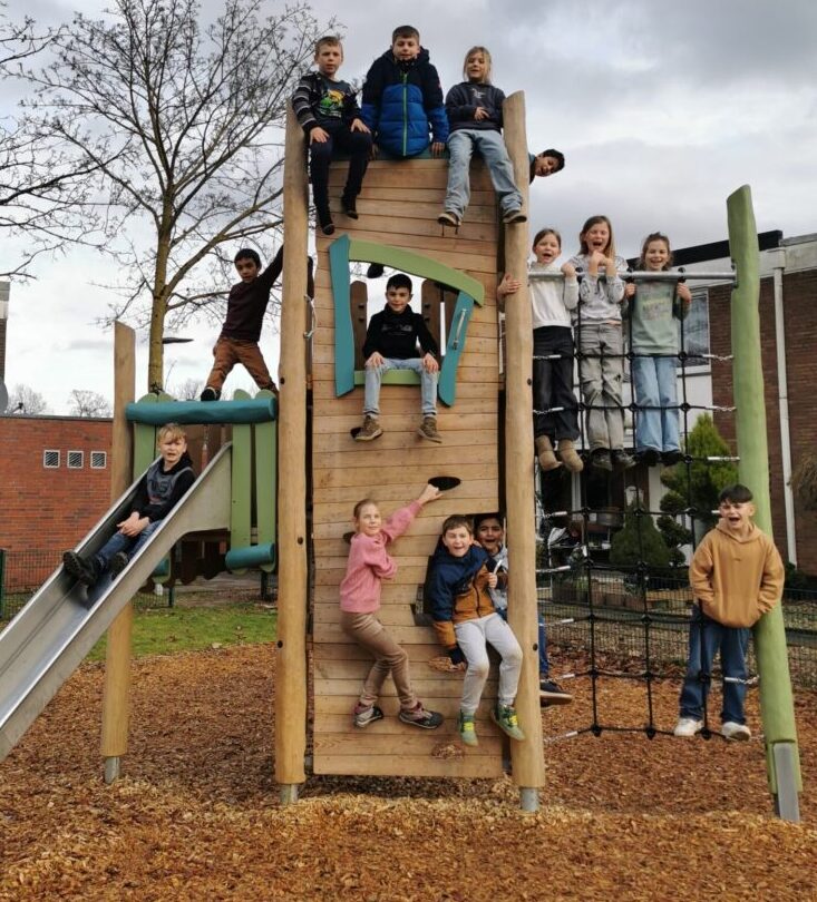 Am Freitag, 16. Januar 2026, war es dann so weit und die kleinen Spielplatzexpertinnen und Spielplatzexperten konnten die neuen Spielgeräte vor Ort selbst in Augenschein nehmen, erobern und ausgiebig testen. Insbesondere die vielen Klettermöglichkeiten sowie der große Spieltrecker kamen gut an. Gemeinsam haben die Kinder den fertigen Spielplatz mit ihrem Spielplatzentwurf verglichen und konnten mit Stolz feststellen, dass nahezu alle Ideen der Kinder vollständig umgesetzt werden konnten. Am Ende waren sich alle einig: Die Neugestaltung hat sich rundum gelohnt!