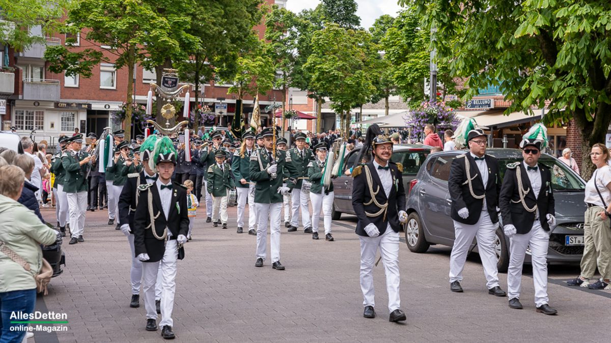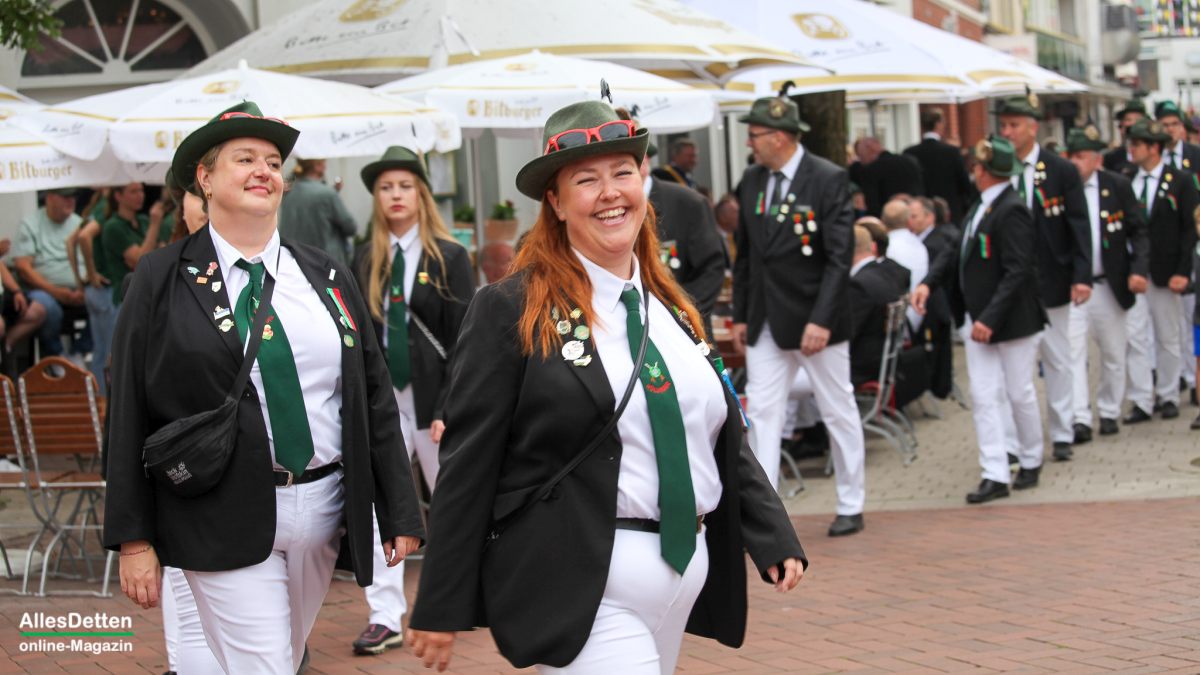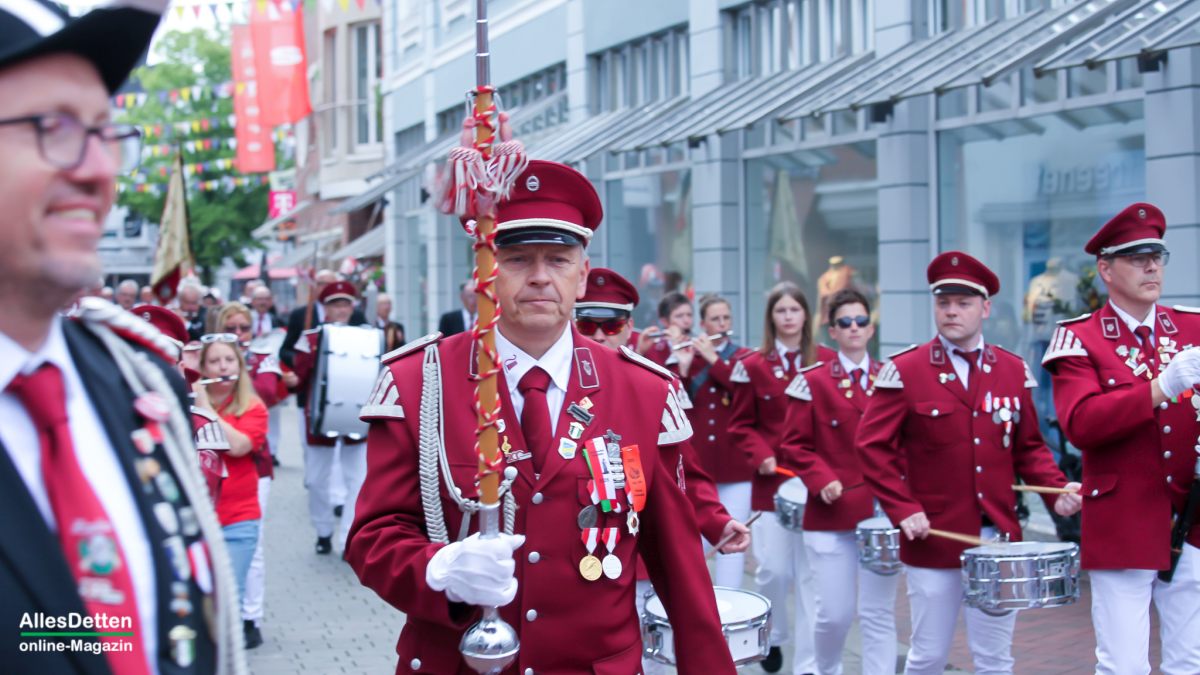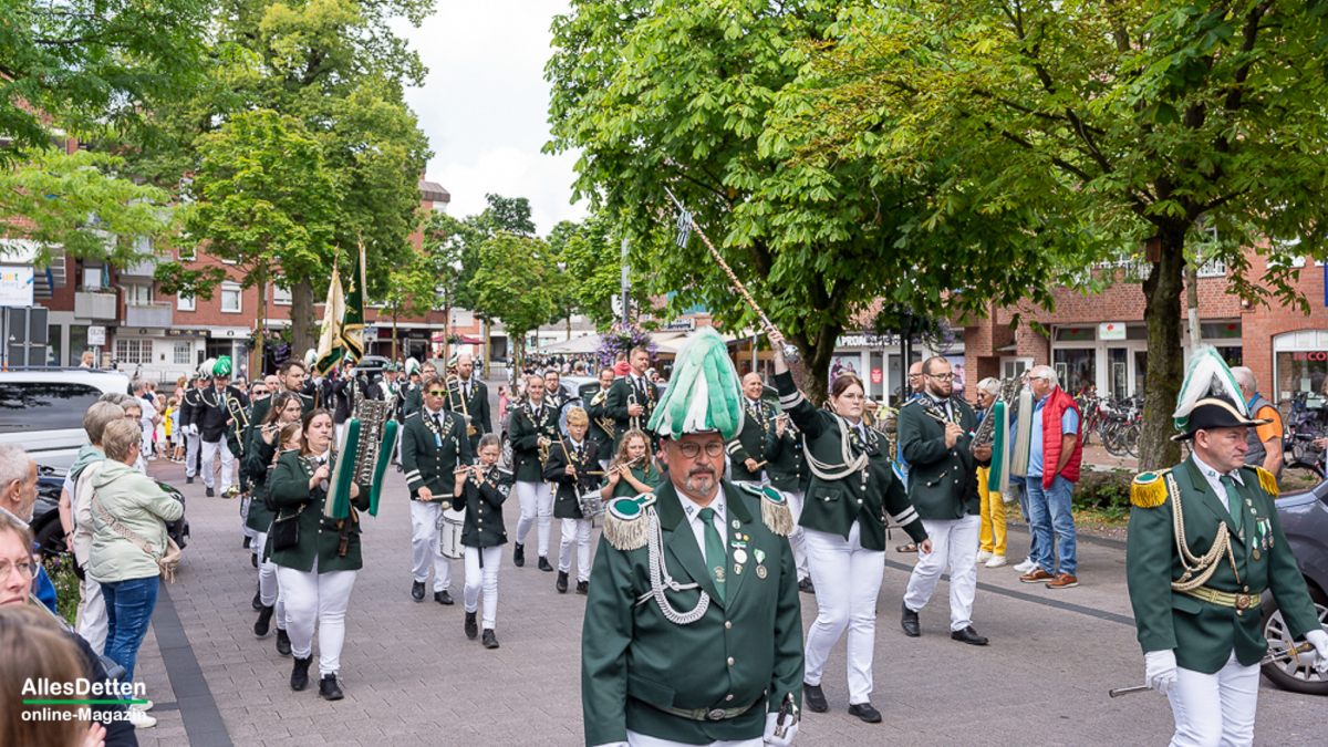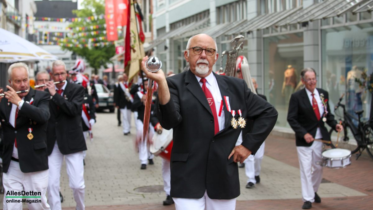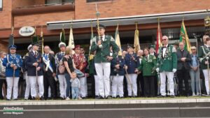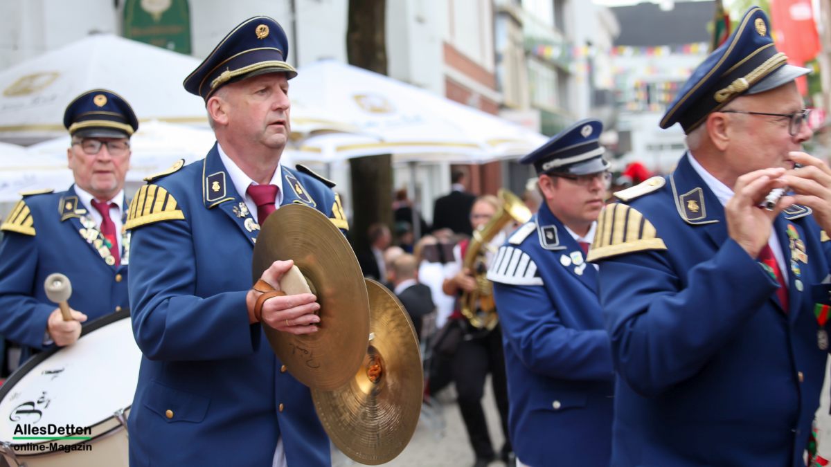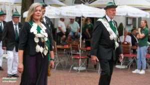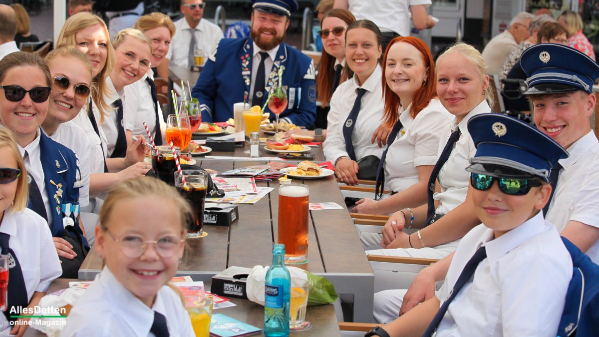 Ein schöneres Wetter kann man sich zu Schützenfest kaum wünschen und so strahlte nicht nur die Sonne sondern auch in den Augen der Schützinnen und Schützen, der Spielleute, der Majestäten und der Zuschauer am Straßenrand war ein Funkeln zu erkennen.