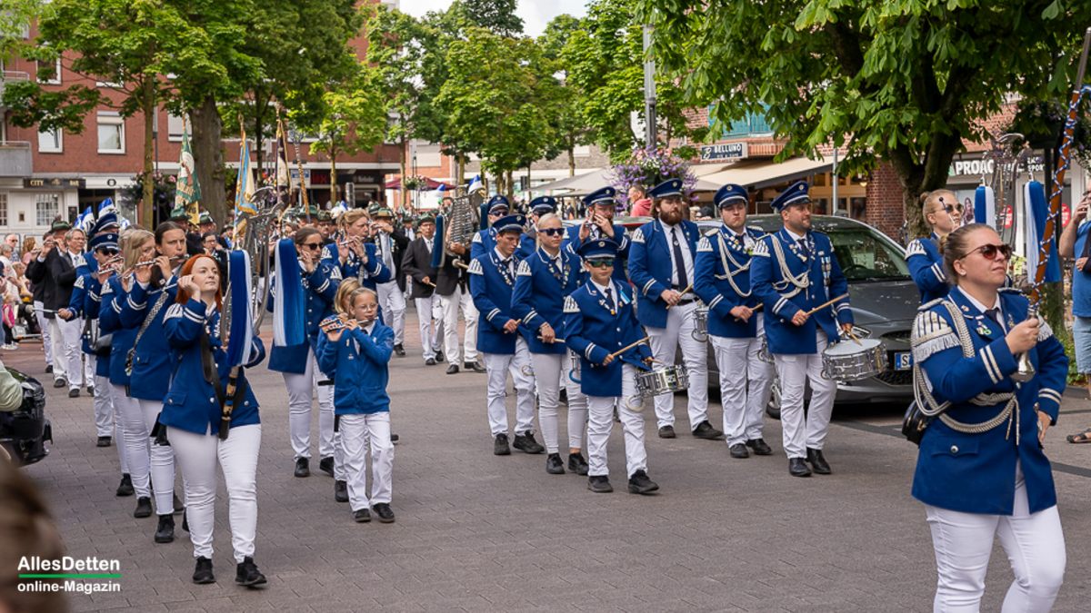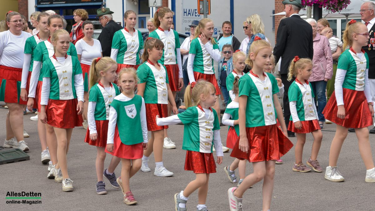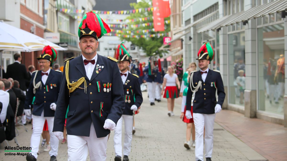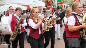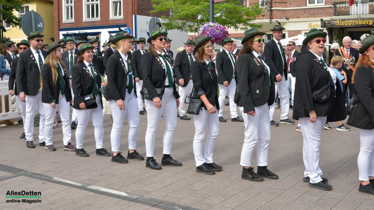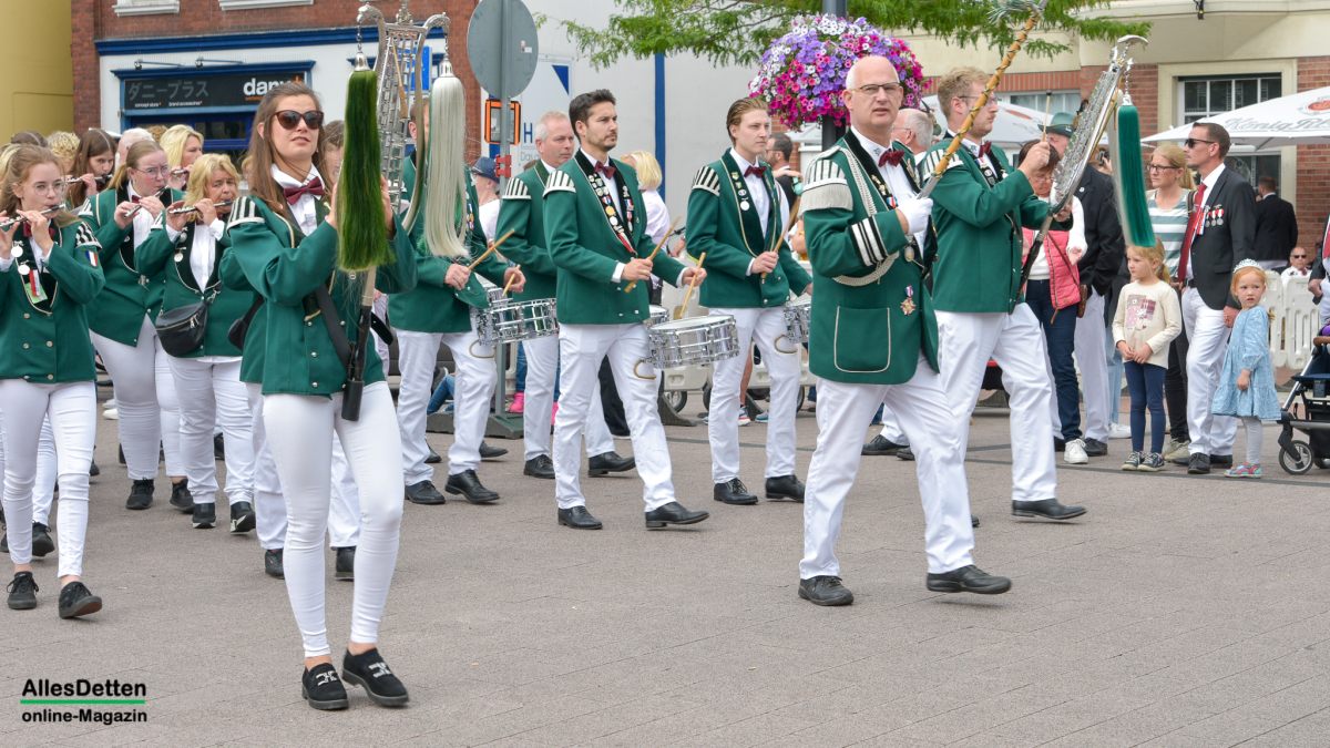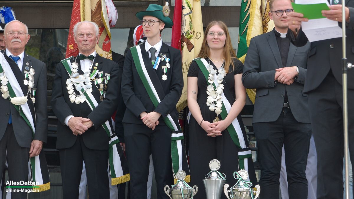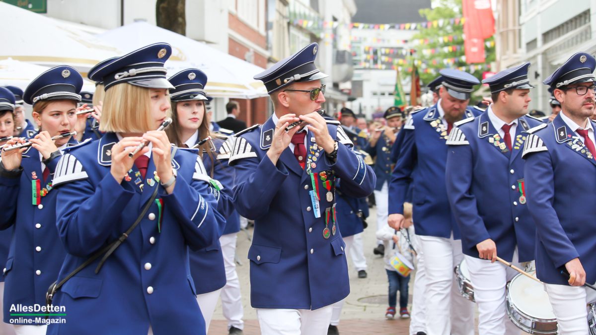 Ein schöneres Wetter kann man sich zu Schützenfest kaum wünschen und so strahlte nicht nur die Sonne sondern auch in den Augen der Schützinnen und Schützen, der Spielleute, der Majestäten und der Zuschauer am Straßenrand war ein Funkeln zu erkennen.