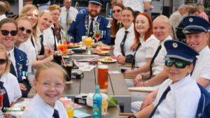 Während sich ein Teil des Westumer Spielmannszuges bei dieser Gelegenheit noch ein kräftiges Frühstück mit ordentlich Rührei hat setzen lassen, haben andere Gruppen mit einem zünftigen Frühschoppen im Biergarten bereits die Zeichen auf das gestellt, wohin sie der weitere Tagesablauf leiten sollte.