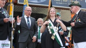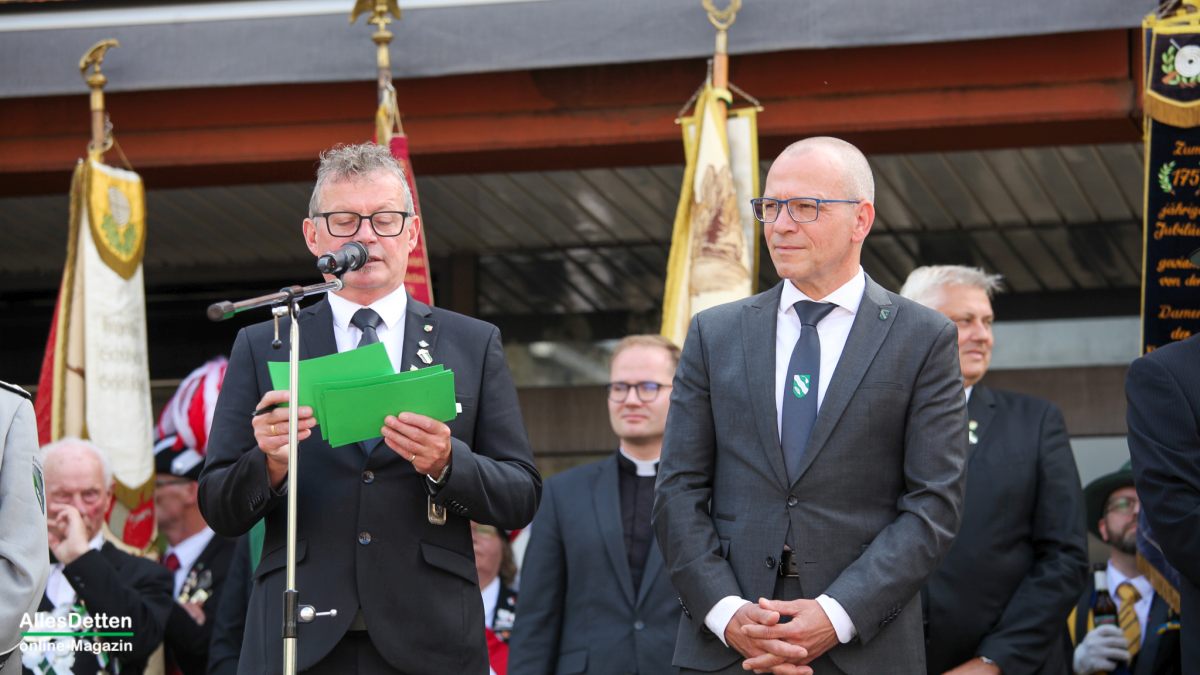 Müllmann wünschte den Vereinen einen harmonischen Festverlauf und würdige neue Kettenträger, denen er hiermit auch gleichzeitig die Einladung zum Königsempfang am kommenden Sonntag aussprach.