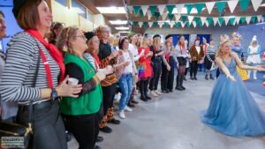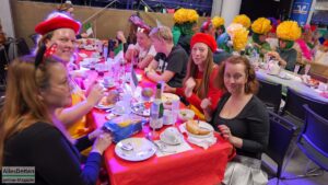 Nächste Station war dann die EMS-Halle. Hier gab es erstmals für 320 Damen , die sich im Vorfeld angemeldet hatten das Altweiber-Frühstück mit Sekt und DJ. Für Prinzenpaar und Elferrat war da eigentlich kaum noch Platz aber irgendwie findet jede Polonaise ihren Weg.