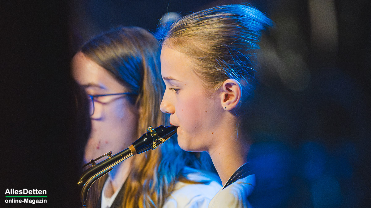 Bei genauerem Blick durch die Reihen des Jugendorchesters fielen aber sehr schnell vier Gesichter auf, deren Jugendzeit schon länger oder auch weitaus länger zurücklagen als die übrigen Mitstreiter alt waren. Sie waren teils Mutter, Vater oder gar Großmutter einer oder eines Musizierenden des Orchesters, die jetzt selber die Zeit und Muße gefunden hatten, ein Instrument zu erlernen oder einfach nur die Chance genutzt haben, als Wiedereinsteiger einmal Erlerntes wieder zu reaktivieren. Das alles verbunden mit dem Aufruf ans Publikum, auch mal auszuprobieren und reinzuschnuppern..