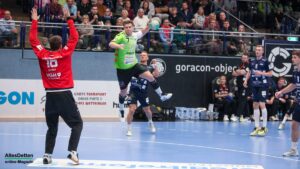 Gut aus Emsdettener Sicht: Auch ohne die angeschlagenen Innenblocker Sergej Gorpishin und Marcel Timm hielt das Zentrum „dicht“. Marius Kluwe spielte im Angriff am Kreis, konnte drei Treffer erzielen und zeigte solide Abwehrarbeit. Schön zu sehen, dass unsere Team neben den beiden großen Kanten noch mehr Alternativen für die Position im Innenblock hat.