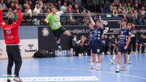 Nicht nur beim Trachtenfest in Hollingen war so einiges los. Der TV Emsdetten veranstaltet beim 42:24 Sieg seine ganz eigene Gaudi und feiert nach dem Abpfiff mit den Fans einen ungefährdeten und hohen Heimsieg.