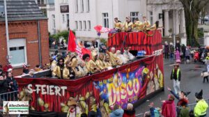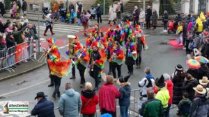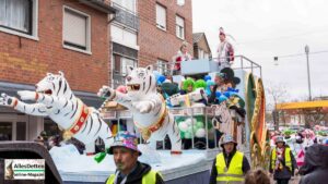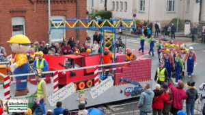 Die Wagenbauer und weitere kreativen Köpfe der Gesellschaften und Vereine hatten ganze Arbeit geleistet. Die einen mehr oder weniger einfallsreich oder handwerklich und technisch versiert – alle jedoch mit ganz viel Eifer und Idealismus. Etwa 2.000 Personen waren direkt im Umzug unterwegs, – als Spielmannszug, Musikzug, Fußgruppe, Elferräte, Prinzenpaare, Tanzgruppen, Wagenbesatzung oder auch Wagenbegleitung, Fahrer… Dazu kommen die vielen Köpfe im Hintergrund. Menschen, die die Kostüme nähen, die Wagen bauen.