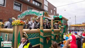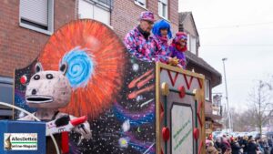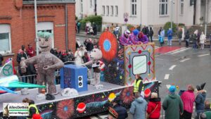 Technik hält immer mehr Einzug, galoppierende Pferde beim Kolping, sich drehende Spongebobs der Westumer Einigkeit, „laufende“ Candys im Täötenclub. Vorbei ist die Zeit der stillen Abbildung. „Karneval ist laut und bunt“ – eine Zeile aus dem aktuellen Elferratslied kann kaum besser passen als Beschreibung für den „Lindwurm der Freude 2026“. Viele ehemalige Stadtelferräte haben sich mit Wagen oder als Fußgruppe beteiligt. – Wer einmal „Blut geleckt“ hat, den lässt der Umzug nicht mehr los. prinz_tobias