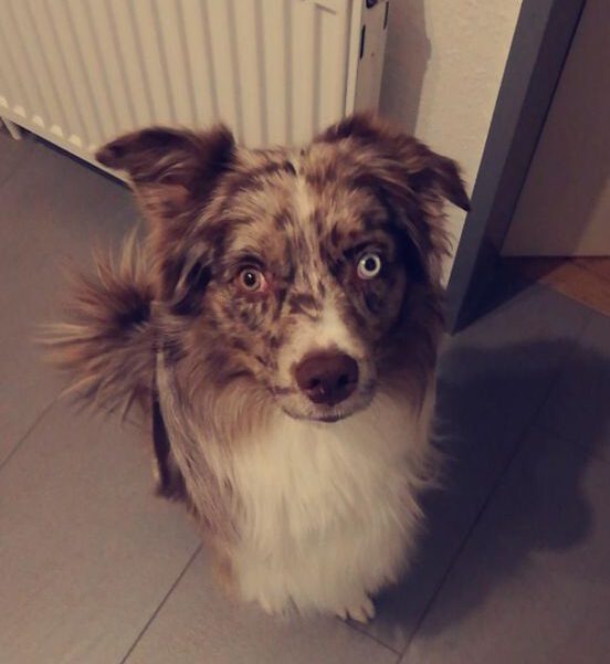 Chewie ist nicht etwa ein Schildkrötenkollege – den hätten wir längst eingeholt, Chewie ist ein Australien Shepherd und hat ein braun-weißes Fell. Das Besondere: die Augen haben unterschiedliche Farben.
