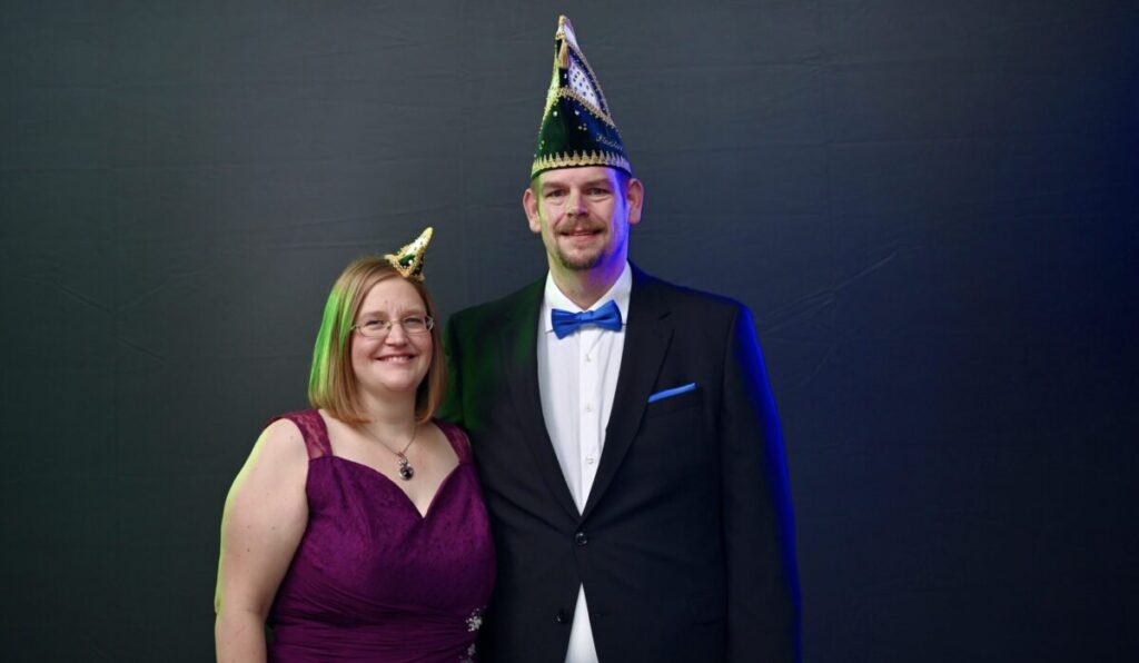 Als Rebekka (42) und André (42) Brüggemann sich aufmachten, das Prinzenpaar von Dottland zu treffen, spürten sie bereits, dass da etwas Besonderes im Busch sein musste. André, mit einem Lächeln, und Rebekka, die das Glitzern in den Augen trug, waren sich sicher, dass diese Begegnung etwas Wundervolles versprach. Und so kam es, dass sie nun in den lustigen Gemäuern des Ministeriums für Umwelt, Naturscherze und nukleare Heiterkeiterstrahlen. Geboren am 13. Mai 1981 in Emsdetten und Stuttgart, teilen sie nicht nur den Geburtstag, sondern auch ihre Liebe für den Karneval. Ihr gemeinsames Abenteuer begann in der Schützengemeinschaft Sinningen, wo sie nicht nur mit dem Prinzen in der Schützenformation stehen, sondern auch die Samen der Liebe für den Karneval säen. Als medizinische Fachangestellte und Profi für den Objektsicherungsdienst teilen Rebekka und André nicht nur ihre Liebe zueinander, sondern auch eine besondere Verbindung zur Natur. Ihr Hund „Herr Hund“ ist nicht nur ein vierbeiniger Freund, sondern auch ein treuer Begleiter auf ihren Abenteuern in der Welt. Mit einer Prise Humor und einem festen Glauben an die Kraft des Lachens repräsentieren André und Rebekka das fröhliche Gesicht von Dottland im Elferrat.