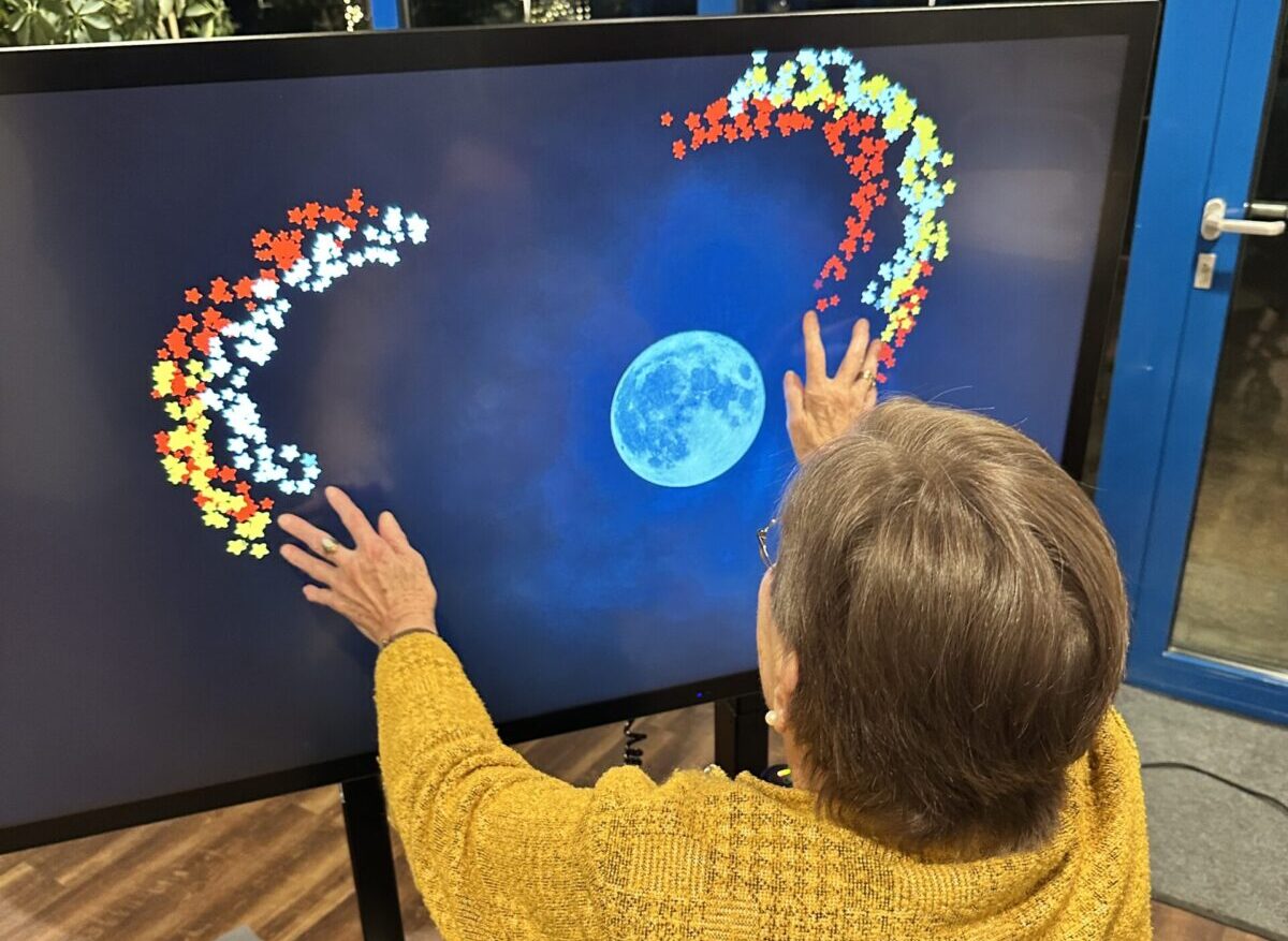 Was auf den ersten Blick an einen großen Fernseher erinnert, entpuppt sich schnell als echter Publikumsmagnet. Der Aktivtisch bietet mit zahlreichen Anwendungen – von Bilderrätseln und Quizformaten über Musik- und Karaokeangebote bis hin zu kleinen Bewegungseinheiten wie Stuhlgymnastik – vielfältige Möglichkeiten, gemeinsam auf dem 55-Zoll großen Touch-Display aktiv zu werden, Erinnerungen zu wecken und miteinander ins Gespräch zu kommen.
