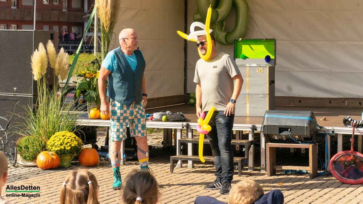 Der Marktplatz verwandelte sich in eine große Bühne und einen Abenteuer-Spielplatz. Neben einer Hüpfburg lockte ein spannender Spieleparcours die jüngsten Gäste an. Auf der Bühne zeigten die Tänzerinnen des HK-Dancestudios und die Roten Funken der Re-Ka-Ge e.V. ihr Können und begeisterten das Publikum mit schwungvollen Auftritten. Ein weiteres Highlight war der Auftritt von Clown Georg um 14 Uhr, der mit seinem Programm und seiner Ballonkunst Jung und Alt zum Lachen brachte.