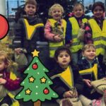 Kita-Kinder schmücken Weihnachtsbaum in Bankfiliale