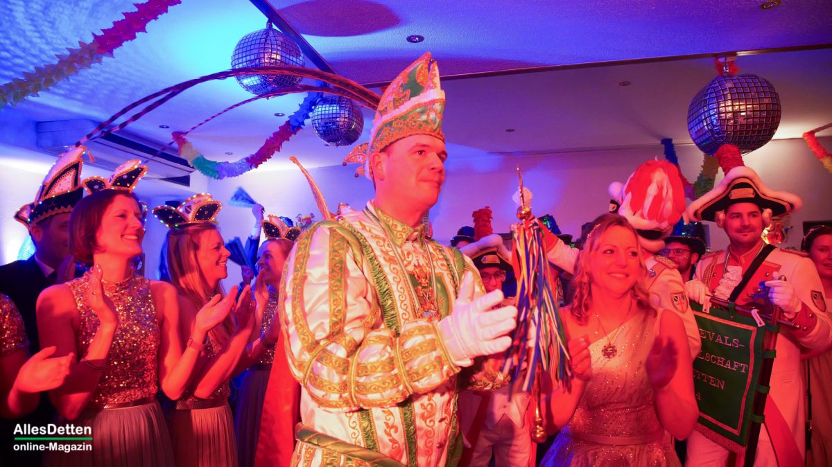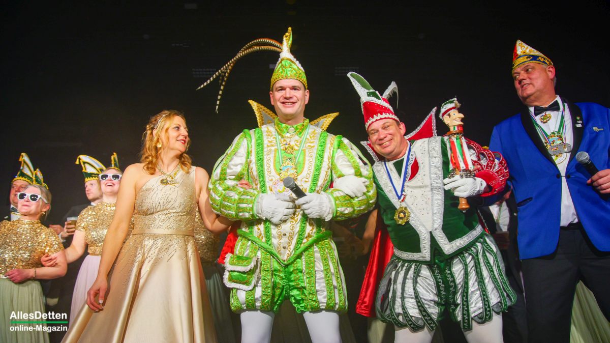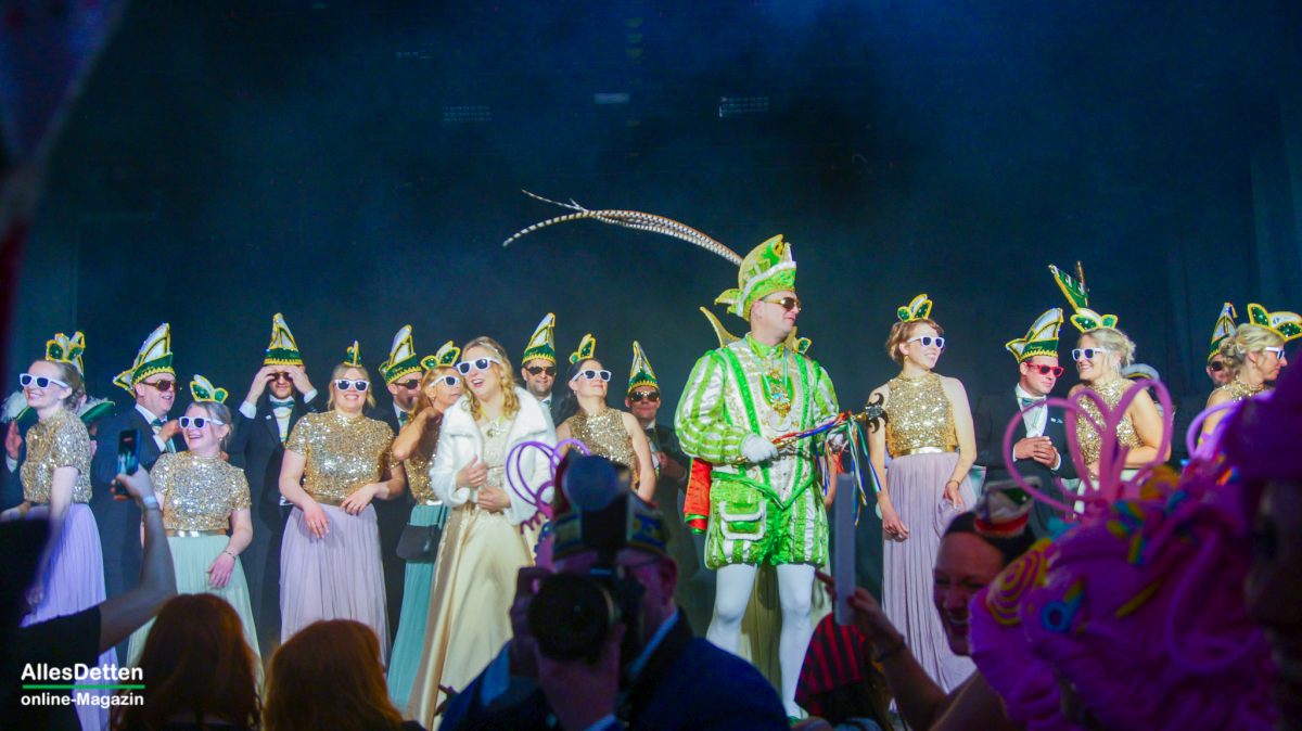 Um 20 Uhr fiel der Startschuss in Sinningen, um 23 wollte man beim Täötenclub im Bürgersaal sein. Dazwischen Borussia im C-Dur, Rosenclub bei Pötter und Bürgerverein Hembergen bei Lanvers. Es hat fast auf den Punkt geklappt, trotz Verzögerungen gleich bei der ersten Veranstaltung: die Sinninger hatten gerade ihre Bunte Bühne beendet, bei der wieder manch einer „in die Pfanne gehauen“ wurde, da marschierte der närrische Troß bestehend aus Stadtprinzenpaar Tobias I. und Jessica I. Tecklenborg mitsamt Stadtelferrat ein. Im Gefolge hatten sie das ehemalige Stadtprinzenpaar Jochen I. und Marion II. Hentschel, einige Gardemädchen des TSC KGE-Balletts, einige KGE-Senatoren, die Präsidenten Martin Mersmann und Thomas Weischer und weitere Vorstandsmitglieder, die Leibgarde des Stadtprinzen…