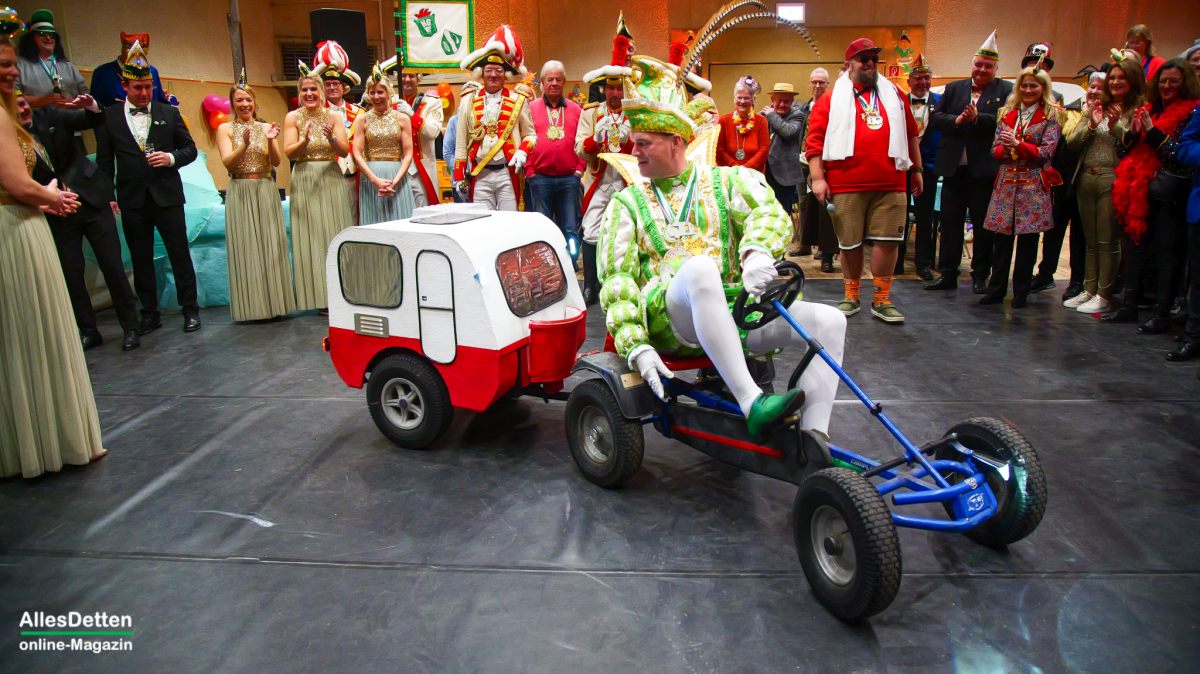 In Sinningen gab es neben dem Prinzenpaarlied und dem Elferratstanz auch ein Lied des singenden Prinzen Stefan in seiner Muttersprache aus den Niederlanden, ihm zur Seite stand Prinzessin Sylvia. „Mit Wohnwagen und Campingzelt – erobern wir die Narrenwelt“, – bei dem Motto war es naheliegen, dass Prinz Tobias I. seine Fahrkünste unter Beweis stellen musste: es galt ein Gespann, bestehend aus Kettcar und Wohnwagen rückwärts einzuparken – problemlos gemeistert!