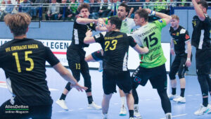 Ein ganz normales Spiel in der dritten Liga, zu Gast ist die zweite Mannschaft des VfL Eintracht Hagen – und die Halle ist mit 2.200 Zuschauern bis auf den letzten Platz ausverkauft. Dem wollten die Spieler des TV Emsdetten wohl gerecht werden und eine gute Leistung abliefern. Die beiden Punkte bleiben in der Ems-Stadt. Und die Zuschauer gingen nach dem 35:26 Heimsieg zufrieden nach Hause.