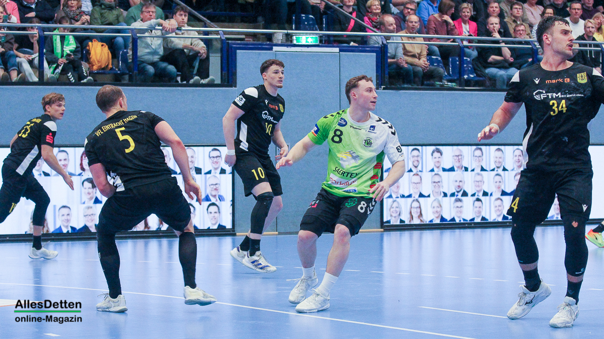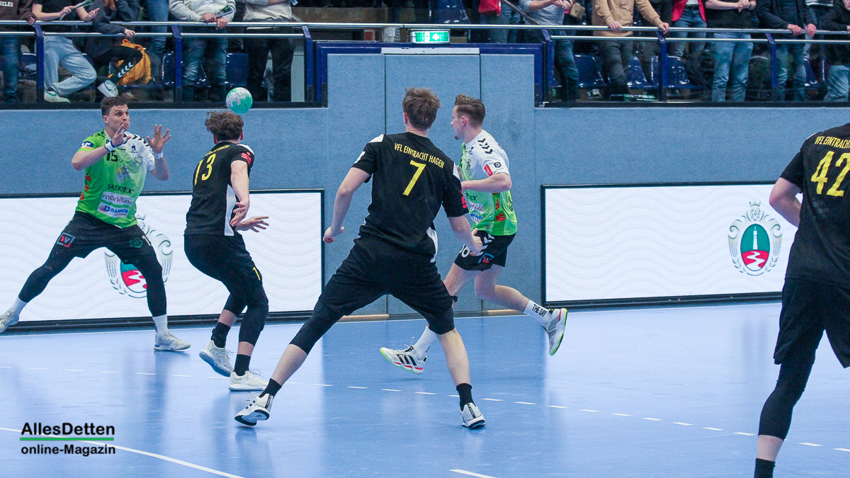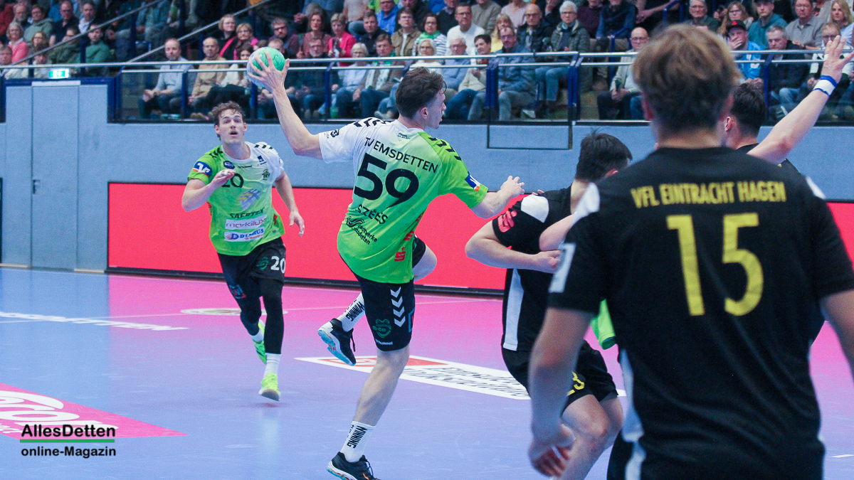 Ein ganz normales Spiel in der dritten Liga, zu Gast ist die zweite Mannschaft des VfL Eintracht Hagen – und die Halle ist mit 2.200 Zuschauern bis auf den letzten Platz ausverkauft. Dem wollten die Spieler des TV Emsdetten wohl gerecht werden und eine gute Leistung abliefern. Die beiden Punkte bleiben in der Ems-Stadt. Und die Zuschauer gingen nach dem 35:26 Heimsieg zufrieden nach Hause.