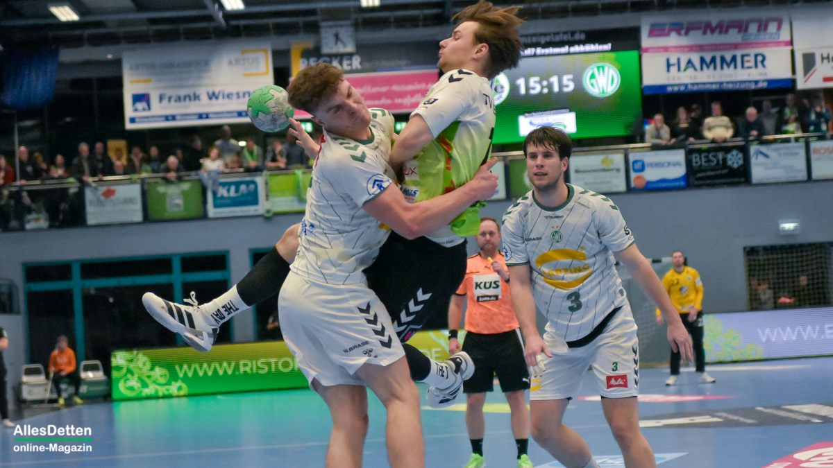 Seine Teamkameraden bewiesen auch ohne ihn eine ganz große Moral. Zwischen Spielminute 50 und 58 ließ Minden kein Gegentor zu. Der TV Emsdetten hatte eine akute Torallergie und ließ die Gäste Tor um Tor heran kommen. Zwei Minuten vor dem Ende sorgte Eimantas Grimuta für das 27:25. Nur noch zwei Tore Vorsprung für Detten! Erst ein Siebenmeter von Yannick Terhaer unterbrach den Negativlauf des TVE und stoppte die Aufholjagd. Luca Klein sorgte dann zehn Sekunden vor dem Ende für den Endstand. 29:25, Heimsieg und zwei weitere Punkte für Emsdetten!