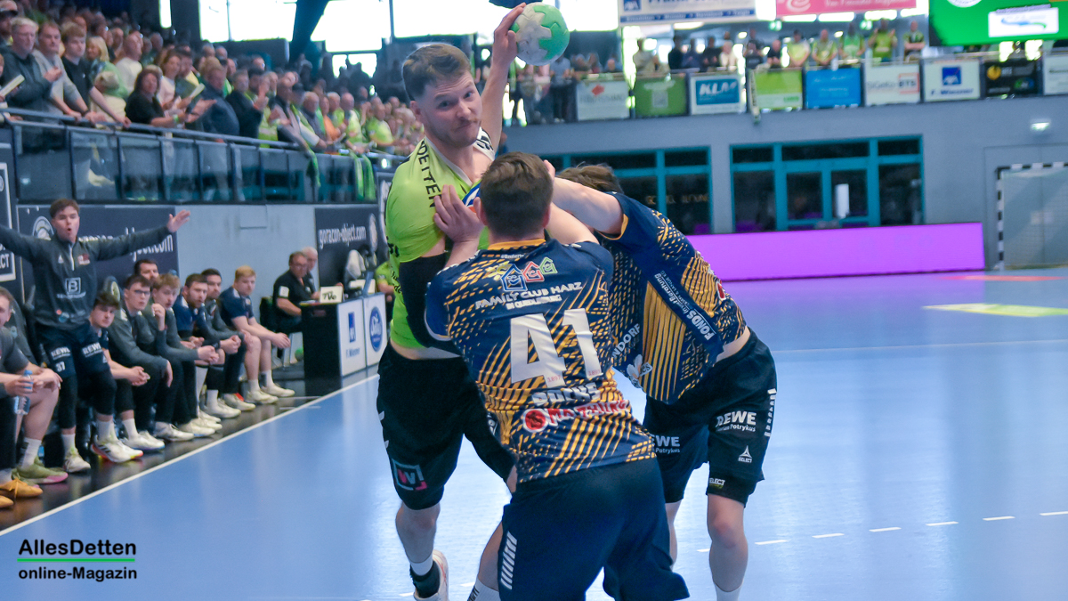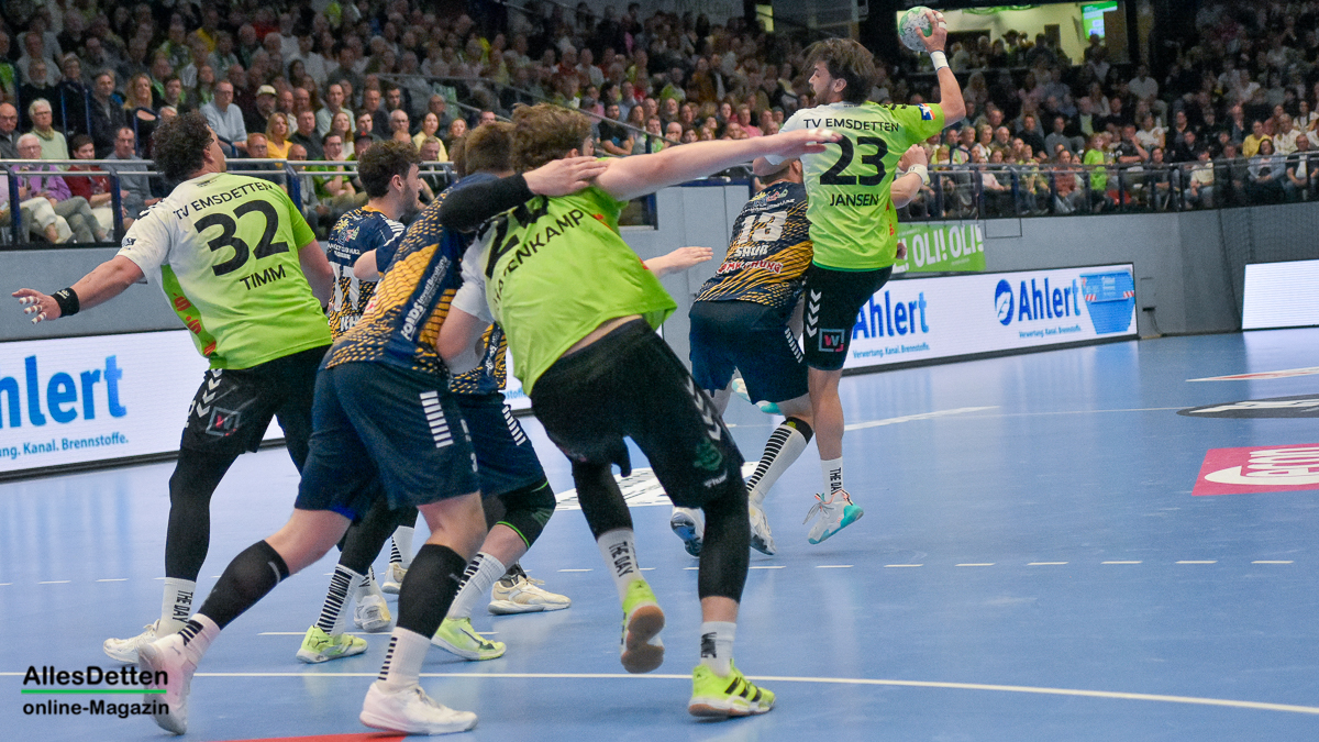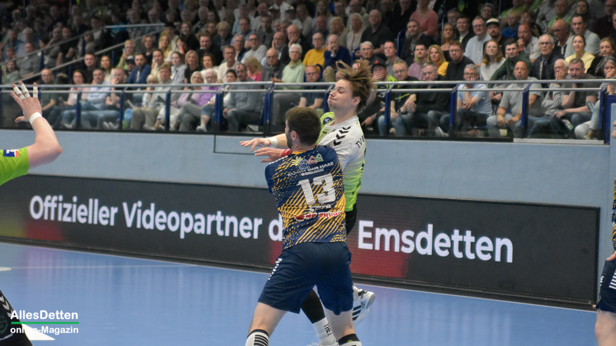Eine ausverkaufte EMS-Halle, ein motivierter Gast und der Matchball auf die Staffelmeisterschaft: Die vielversprechende Partie gegen den TSV Anderten war über 60 Minuten sehenswert und brachte dem TV Emsdetten die Gewissheit auf Platz eins der Staffel Nord-West ins Ziel einzulaufen. Für den 40:31 Sieg mussten sich die Schützlinge von Lennart Lingener über weite Strecken der Partie aber schon strecken.