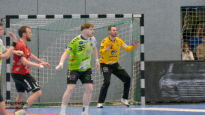 Der HSG muss man anrechnen, dass sie erkennbar versuchte sich hier nicht abschießen zu lassen. Mit Mut und guter Abwehrarbeit gelang der Start in die zweite Halbzeit für die Gäste. Quälend lange sechs Minuten und 41 Sekunden brauchte Emsdetten für den ersten Treffer im zweiten Durchgang. Eine doppelte Unterzahl aufgrund von Zeitstrafen gegen Gorpishin und Esche musste noch verkraftet werden. Nach dem ersten Torerfolg sah die Partie dann wieder aus wie im ersten Durchgang: Mit fortschreitender Spielzeit und kaum Wechselmöglichkeiten fiel es Varel spürbar schwer das Tempo mitzugehen. Die Friesländer konnten nur auf zwölf einsatzfähige Spieler zurückgreifen, konnten so deutlich weniger wechseln als der TV Emsdetten. Trainer Lennart Lingener machte von dieser Option reichlich Gebrauch und brachte frische Kräfte in die Partie. Einer von ihnen gab am Samstagabend sein Heimdebut: Torhüter Paul Dreyer sammelte die ersten Spielminuten in der EMS-Halle, zeigte starke Paraden und konnte selbst einen Treffer ins leere Varel Tor anschreiben. Klar, dass der junge Torhüter am Ende die Humba anführen dufte.