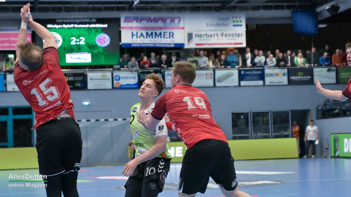 Mit 35:20 Toren fährt der TV Emsdetten einen eindeutigen Heimsieg gegen die HSG Varel ein. Eine mit 2.200 Zuschauern ausverkaufte EMS-Halle sieht ein Spiel in dem nie wirklich Spannung aufkam – und einen Neuzugang bei seinem Heimdebüt.