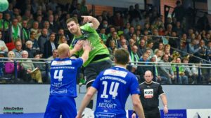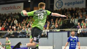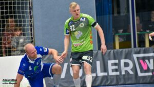 Schon vor dem Anpfiff stellte Trainer Lennart Lingener im Vergleich zu den letzten Spielen viel um. Teils freiwillig, teils gezwungen. So spielte Paul Kolk weite Strecken der Partie auf Linksaußen. Sein Kollege Dirk Holzner kam für lange Zeit nur für die Siebenmeter von der Bank. Auf Rechtsaußen musste Lingener auf den „Dettener Jungen“ Yannick Terhaer verzichten. Hier übernahm Julian Thomas, der ganz groß aufspielte. Dazu fehlte Kapitän und Kreisläufer Jakob Schwabe. Der saß zwar auf der Bank und führte sein Team beim Einlaufen auch in die EMS-Halle, ein Einsatz für den angeschlagenen Abwehrspezialisten war aber nicht vorgesehen. Lars Kooij und Marius Kluwe übernahmen seine Aufgaben.
