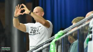 Das ging dann auch im zweiten Durchgang so weiter, der hohe TVE Sieg war nie gefährdet. Die Krönung in der Causa Robin Jansen gab es dann in der 49. Spielminute: Jansen verteidigte weit weg vor dem eigenen Tor, erwischte bei einer Abwehraktion seinen Gegenspieler wohl etwas unglücklich im Gesicht und sah dafür seine dritte Zeitstarfe. Das bedeutete die rote Karte für unseren Niederländer. Ein Platzverweis, den hier am Samstagabend niemand brauchte. Regeltechnisch eine korrekte Hinausstellung, für die Zuschauer in der Halle aber natürlich kaum nachvollziehbar. Dass die Schiedsrichter insgesamt keinen sicheren Eindruck machten und auch die Zeitnehmer mehrfach eingriffen und das Spiel unterbrachen, trug sicherlich zum Unverständnis der Zuschauer bei.