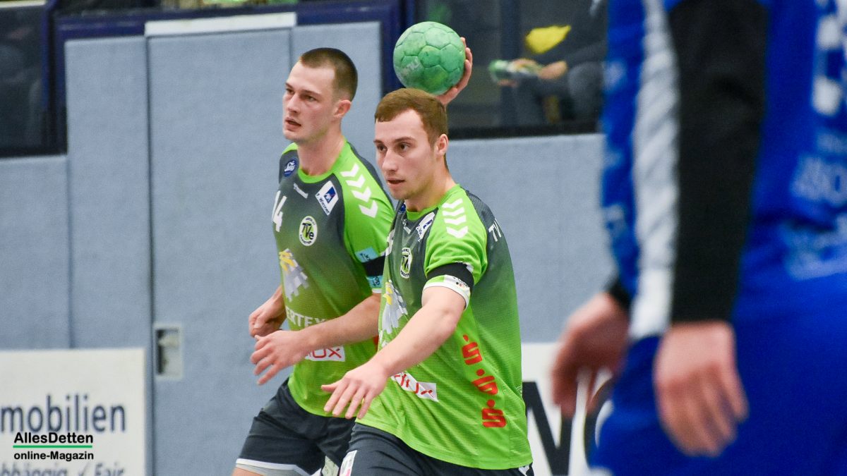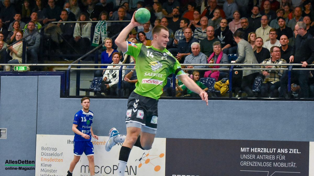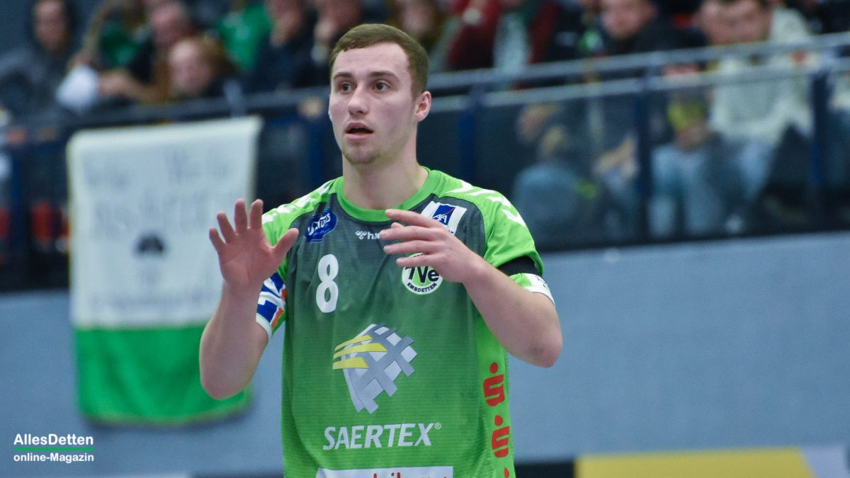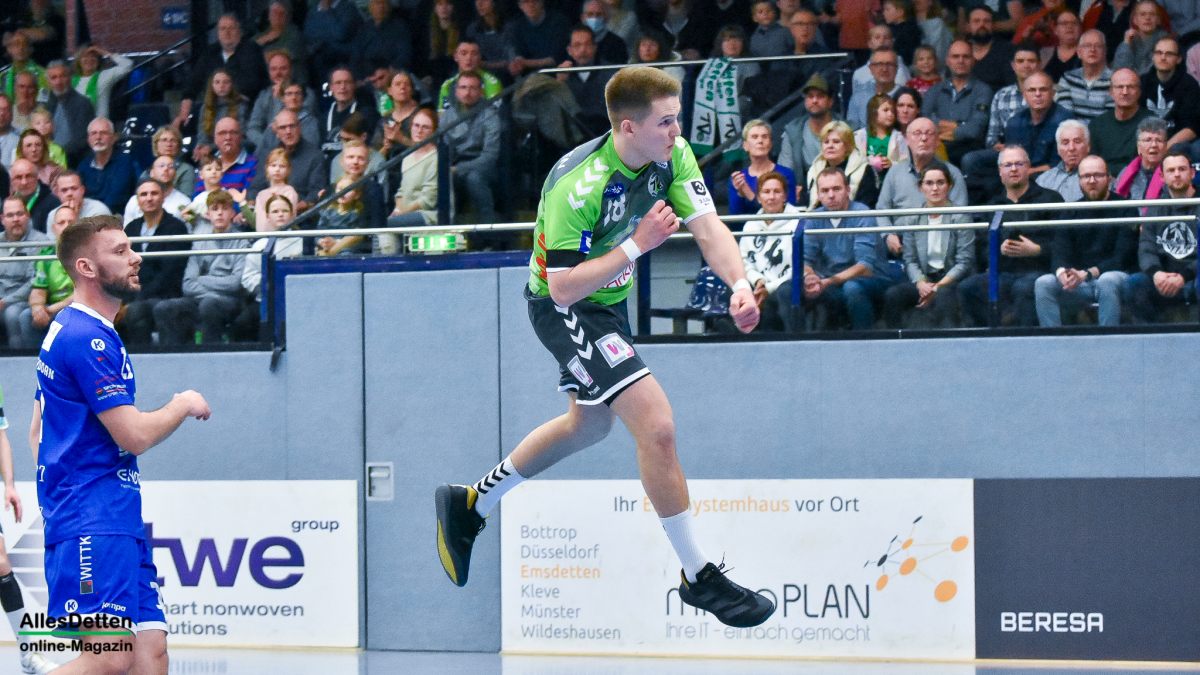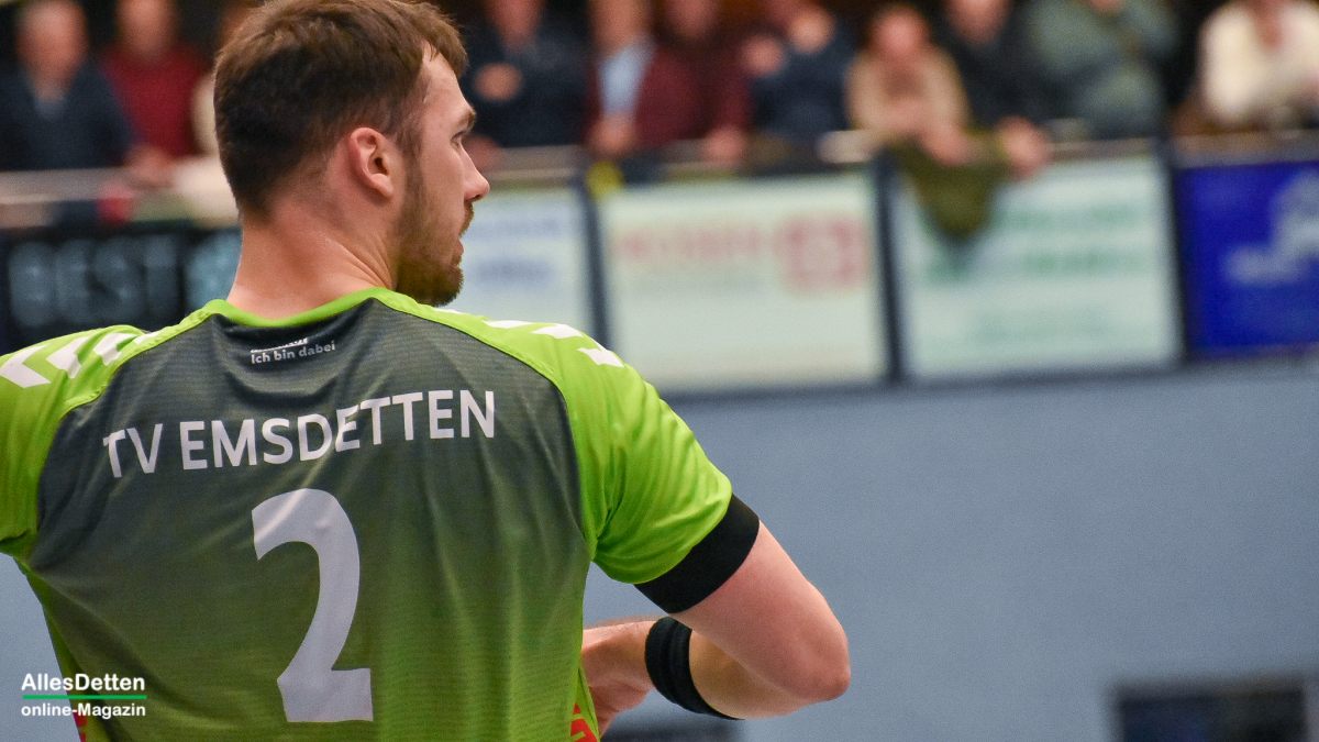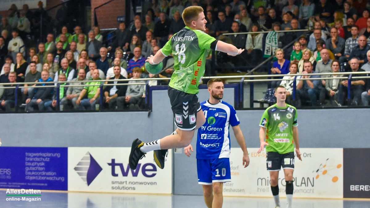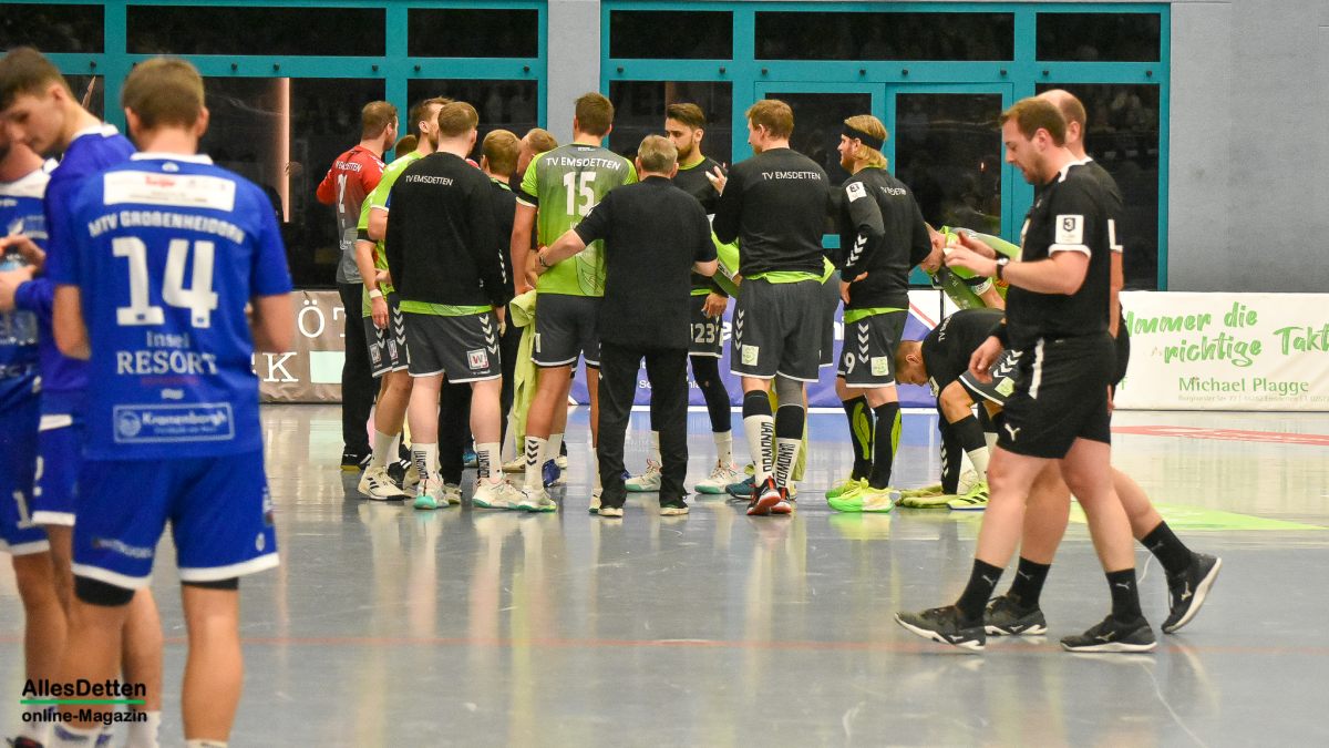 Schon vor dem Anpfiff stellte Trainer Lennart Lingener im Vergleich zu den letzten Spielen viel um. Teils freiwillig, teils gezwungen. So spielte Paul Kolk weite Strecken der Partie auf Linksaußen. Sein Kollege Dirk Holzner kam für lange Zeit nur für die Siebenmeter von der Bank. Auf Rechtsaußen musste Lingener auf den „Dettener Jungen“ Yannick Terhaer verzichten. Hier übernahm Julian Thomas, der ganz groß aufspielte. Dazu fehlte Kapitän und Kreisläufer Jakob Schwabe. Der saß zwar auf der Bank und führte sein Team beim Einlaufen auch in die EMS-Halle, ein Einsatz für den angeschlagenen Abwehrspezialisten war aber nicht vorgesehen. Lars Kooij und Marius Kluwe übernahmen seine Aufgaben.