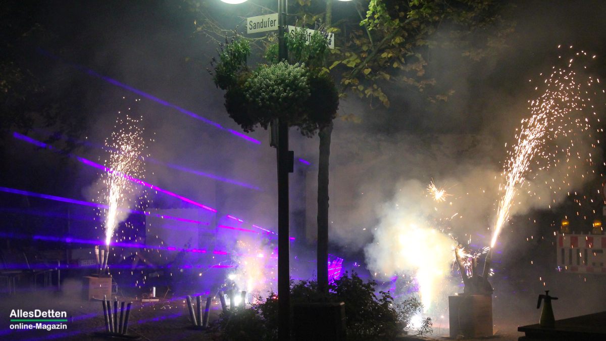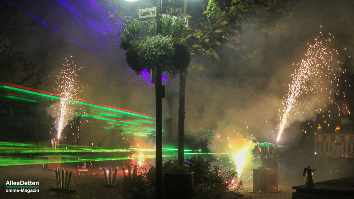 Der Auftakt der „großen Kirmes“, wie die Herbstkirmes in Emsdetten einst genannt wurde, weil sie einen Tag länger dauert als die Maikirmes, war vom Besuch her schon ganz ordentlich. Das Wetter war ja auch perfekt um durch die Straßen der Innenstadt zu schlendern. Zudem sollte eine große Laser-Show das traditionelle Feuerwerk ablösen. Am Ende war es dann eine Mixtur aus beidem, was auf dem Sandufer zu sehen war. Laser-Show und Feuerwerk mit reichlich Knallern, die eigentlich vermieden werden sollten. Die Menschen standen hier dicht gedrängt und ließen die vielfältigen optischen Eindrucke auf sich einwirken.