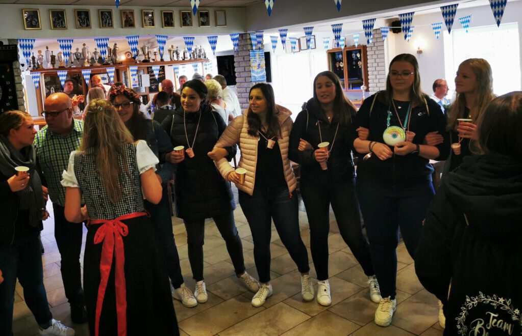 Den Auftakt machte hierzu der bayerische Frühschoppen am Samstag, bei dem etwa 40 Mitglieder des Vereins samt Begleitung dem Münchener Oktoberfest mächtig Konkurrenz machten. Bei leckeren Spezialitäten und kühlem Bier wurde geschunkelt und getanzt was die Musik hergab. Auch einige Damen des Juniorenspielmannszuges, die ihrerseits auf Junggesellinnen-Abschiedstour waren, ließen es sich nicht nehmen für einen kurzen Abstecher vorbei zu schauen.